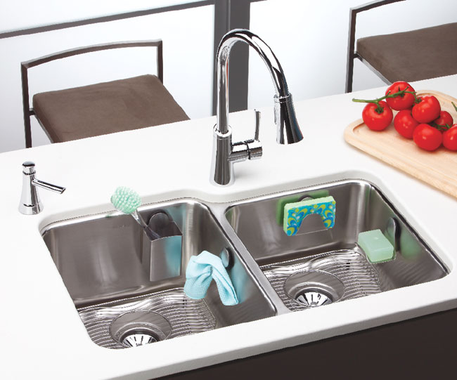 OPPOSITES ATTRACT | With a magnetic device built into 45 of Elkay’s most popular sinks and an array of accessories that fasten onto the walls, the e-Dock sink system will clear clutter and improve functionality of the most-used spot in your kitchen. Sinks $627-$1,227 and accessories $22-$38, Klaff’s Inc., Norwalk, 203-866-3369, klaffs.com.