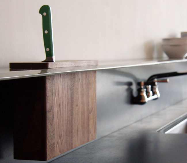 SAVING SPACE | Viola Park’s counter system with integrated knife block offers the perfect solution for a safer kitchen. Available in walnut, rift-cut white oak and bamboo, the handy block holds 12 of your sharpest accessories. Price upon request, Henrybuilt, NYC, 212-966-5797, henrybuilt.com.