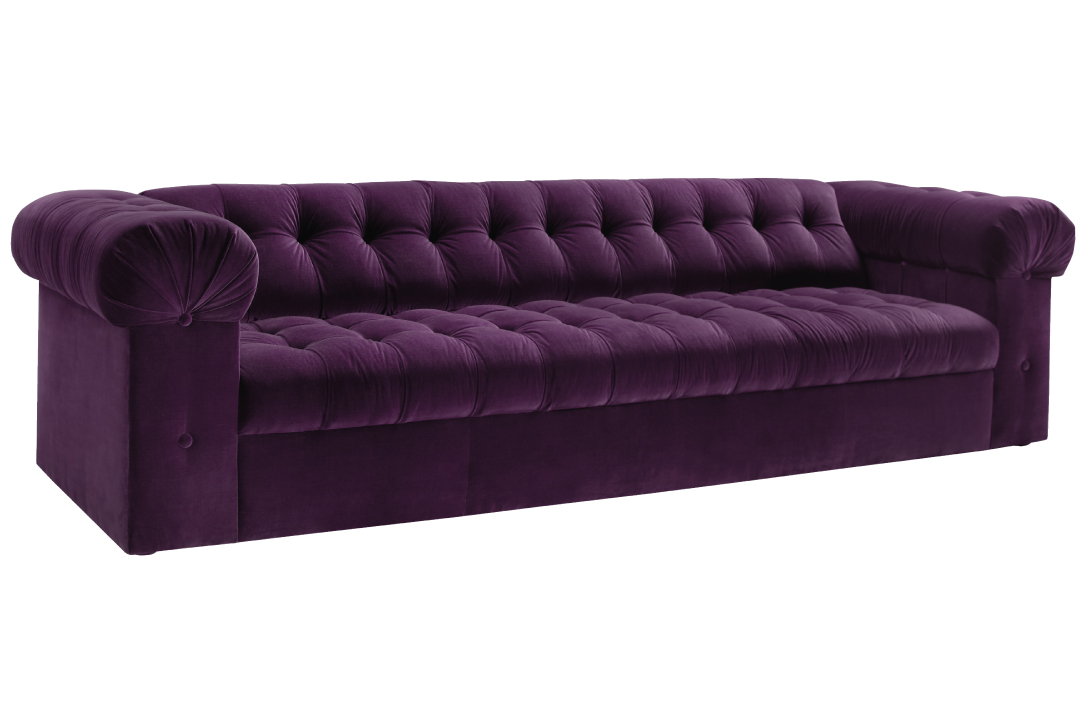 Baker’s St. James extended length sofa is inviting for everyday living, lounging and entertaining. Part of the Jacques Garcia collection, the rectilinear, tailored design and biscuit tufting belie its comfort level. Price as shown, $14,635.