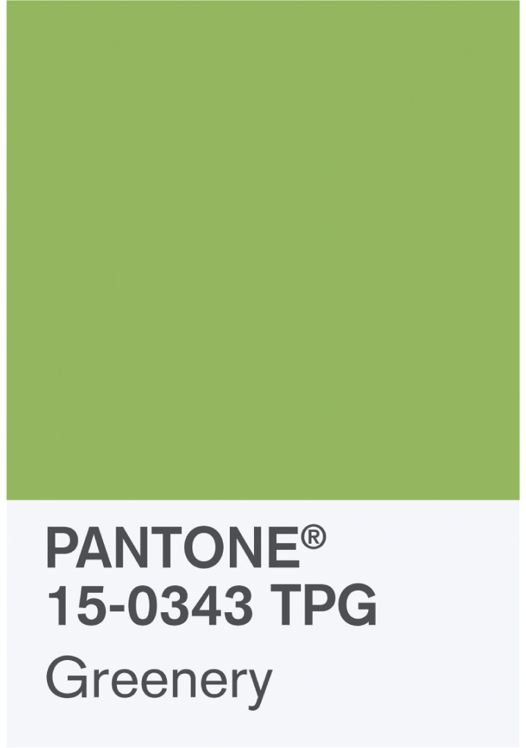 Pantone’s selection for 2017 is Greenery. Symbolic of new beginnings, this zesty yellow-green brings to mind the first days of spring.
