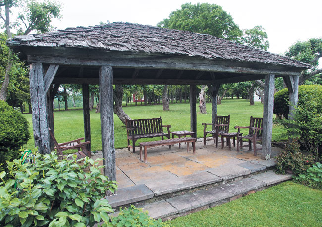 The rustic Olmsted original gazebo that commands one side of the garden has required no renovation through the years.