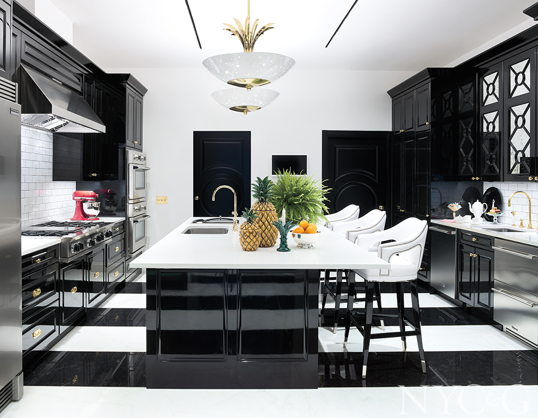 Julius and Marra took design cues from their favorite hotels, from boutique gems to grande dames, to create areas specifically dedicated to relaxing and entertaining. But the decorative details were inspired largely by the maximalist style of the legendary designer Dorothy Draper—by no means an easy act to follow. “We’re not draftsmen, and there are a lot of things we can’t do,” explains Marra, “so we needed to bring someone else into the project to help us.” Enter Julius and Marra’s old friends Lorenzo Mollicone and Tony Ferchak of the Miami-based William Bernard Design Group—a strategic choice, since Mollicone started his career working with Carleton Varney, president of Dorothy Draper and Co., on projects including the venerated Greenbrier Hotel in White Sulphur Springs, West Virginia. The firm, in tandem with Julius and Marra, created most of the cabinetry, decorative moldings, and millwork.