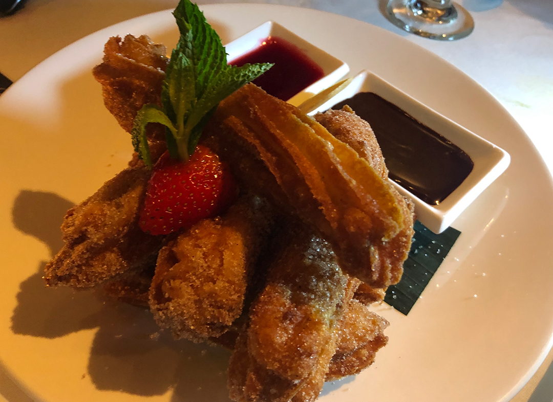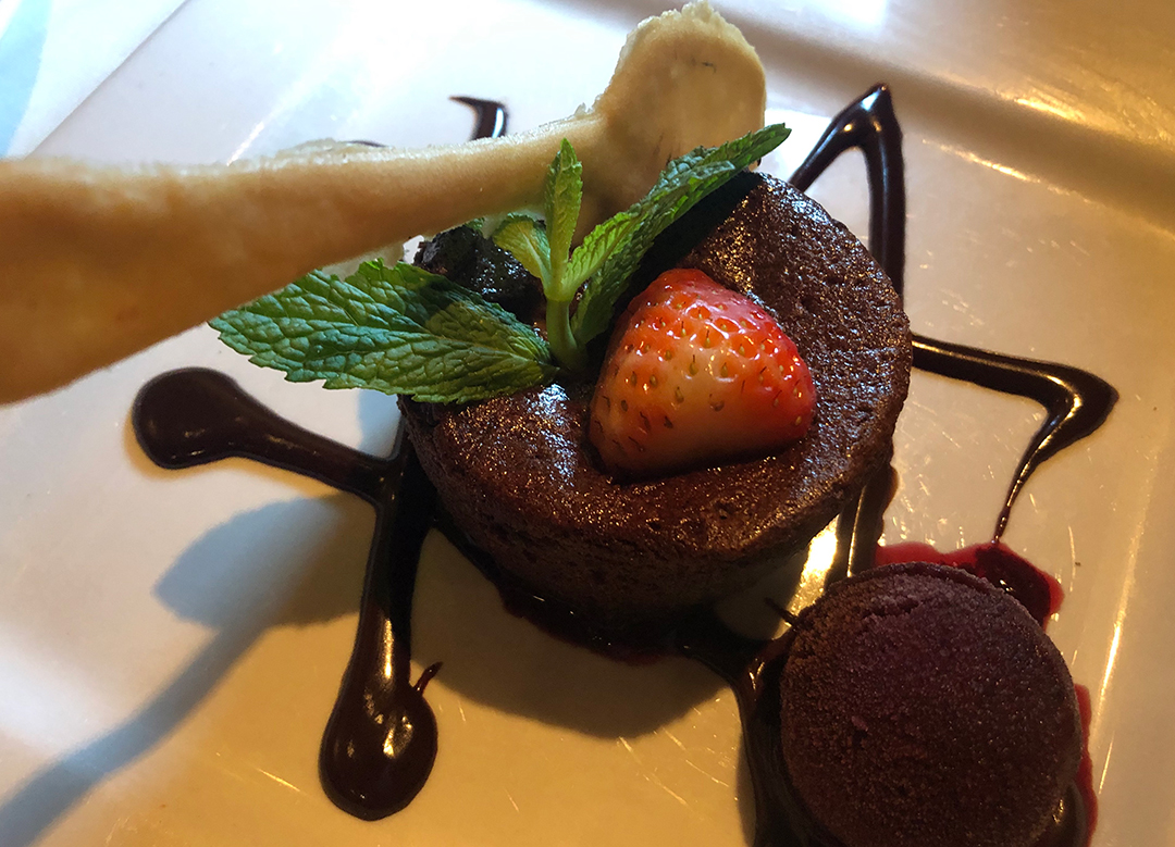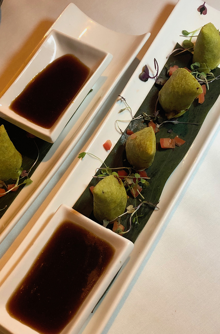 An unexpected favorite, the Quinoa Empanadas, are filled with flavor from the roasted eggplant, goat cheese, and quinoa. Dipping them in the chocolate vinaigrette was fun compliment to these savory bites.