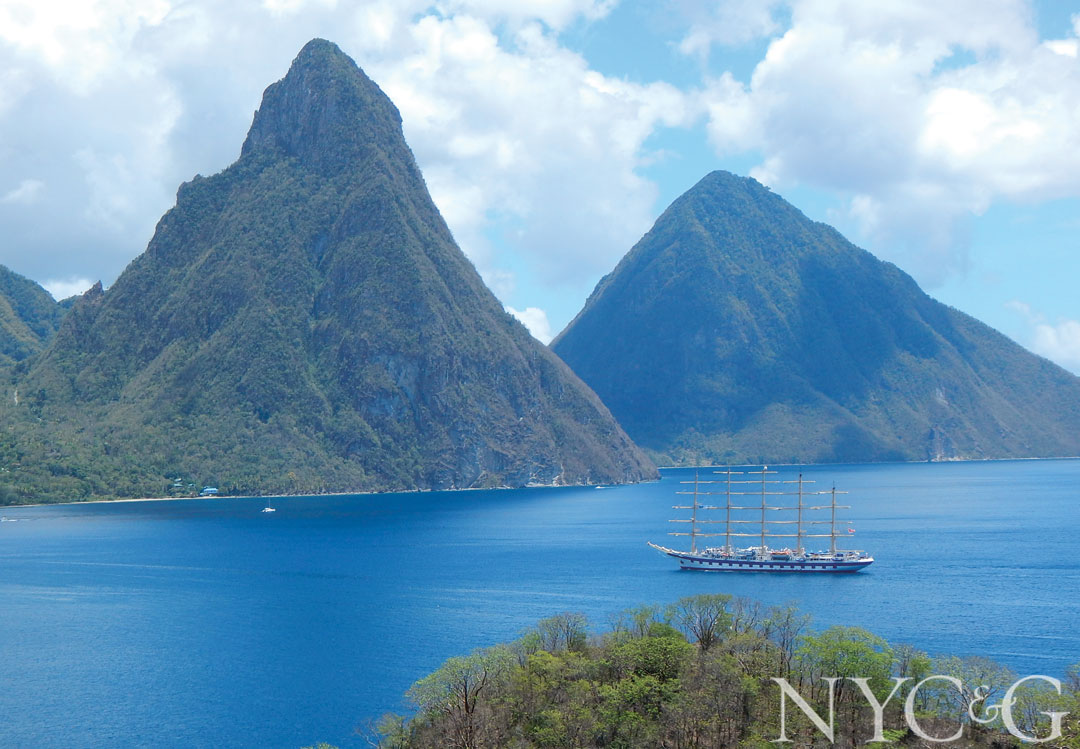 Because I cannot resist things like salted caramel custard with raspberry sorbet and cocoa-nib biscotti, I knew I couldn’t get away with lolling at the beach all day long, although the temptation was certainly there. Fortunately, Jade Mountain and Anse Chastanet offer numerous water sports, as well as jungle biking and hiking excursions on the 600 acres of land behind the adjacent Anse Mamin, where ruins from a sugar plantation dating from the French occupation in the 1700s still stand. One morning, the resort’s brick-solid trainer, Jayy Christopher, a former Olympic boxer, put me through my paces as we alternately power-hiked and sprinted up Tinker’s Trail, a dizzying mountain-biking trail created by world champion biker Tinker Juarez, a native St. Lucian. For those who make it to the top, the tradition is to ring a bell installed at the summit while savoring the staggering view. Not to be overlooked, though, are the verdant botanical wonders lining the forest trails below, including poinciana, calabash, tamarind, tulip, mango, and breadfruit trees, as well as wild ginger, heliconia, cacao, and bamboo. Located near a reservoir, the ruins of the sugar mill and the crumbling quarters of the mill master—gingerbread trim still shockingly intact—are stark, depressing, important reminders of the island’s violent slave trade. (Slavery was abolished on St. Lucia in 1838, although indentured servitude was in practice until 1917.)