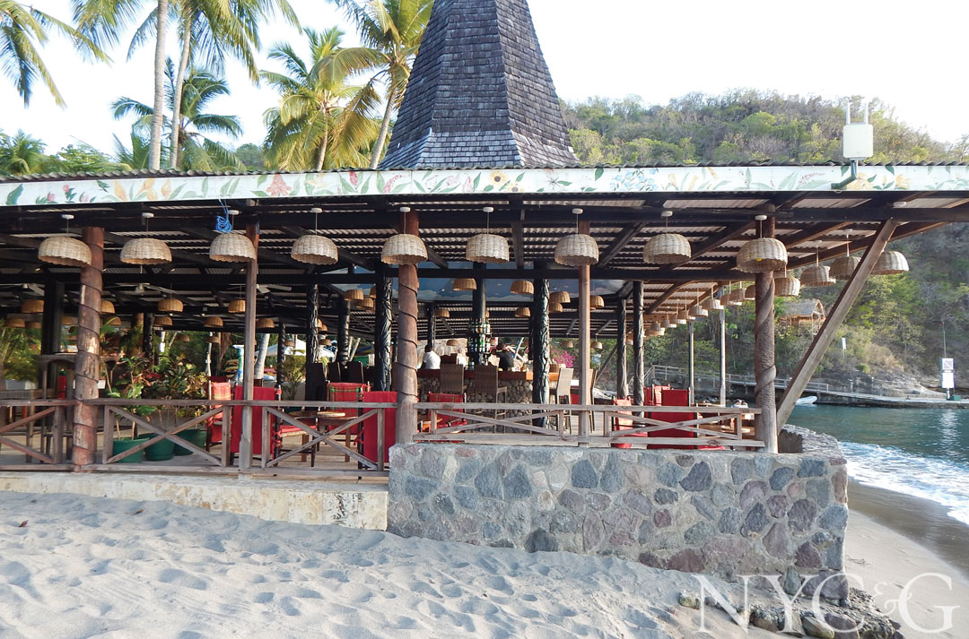 After we emerged from the jungle, Christopher and I watched five men fishing “the old-fashioned way,” from a canoe. Only one man can be seated, running the motor, while the other four must stand, performing a delicate balancing act to avoid tipping over. To attract fish, they dipped dried palm branches into the water, rippling the surface and then quickly netting their catch. Seeing them at work made me deeply appreciate my lunch at Anse Chastanet’s beach restaurant, where I devoured rare seared tuna with green papaya slaw and tamarind dressing and considered my good fortune to be enjoying such a heavenly day. Anse Chastanet’s staff will happily call a buggy to bring guests back up the hill to Jade Mountain, but I preferred to walk the 235 stairs, “straightaways,” and 174 half-stairs back to my private sanctuary. I felt like I needed to earn the privilege.