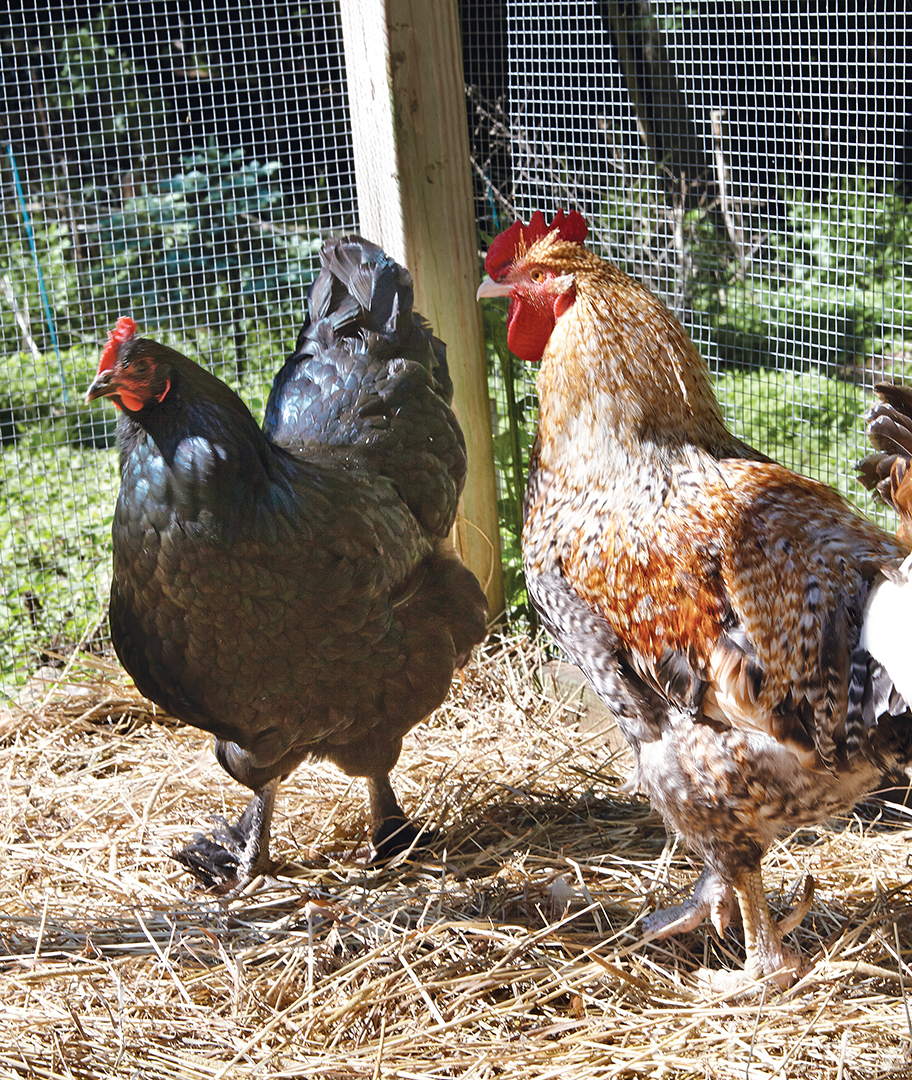 Chickens are a vital part of the farm and are fed only vegetable scraps and bread.
