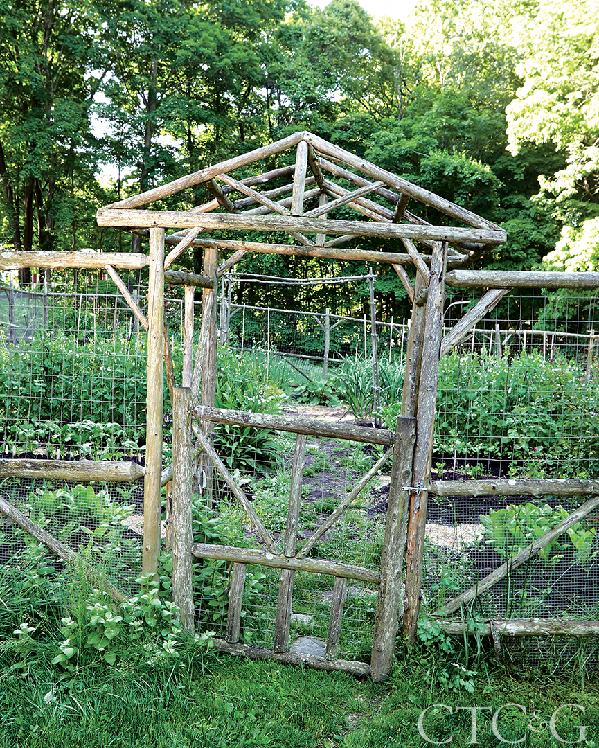 Local craftsman Bill Rowe created the garden gate and fence.