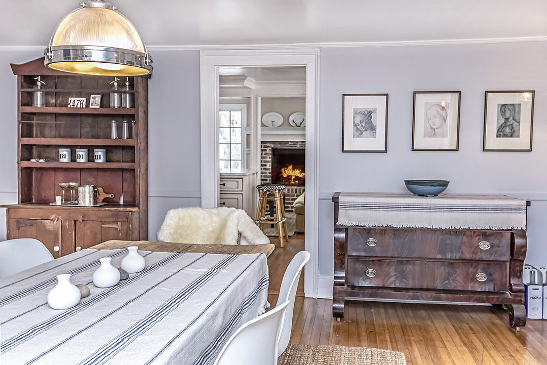 On Peaceable Street in Ridgefield, Connecticut—on grounds that were once part of the Doubleday Farm—there’s a just-listed, circa-1800 Colonial where the sellers spent a couple of decades renovating every inch of the 2,900-square-foot home. It opens onto an entry hall with a fireplace, then flows to formal living and dining rooms and a new kitchen with a hangout space and an oversized brick-faced fireplace.