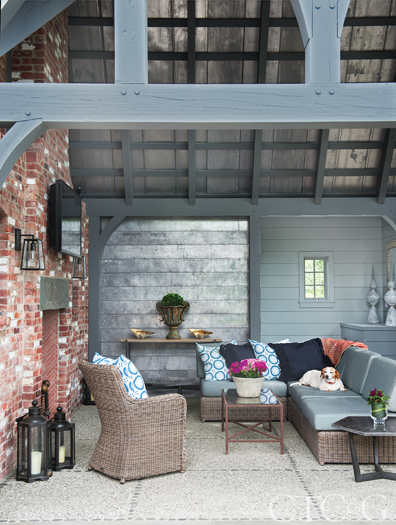 The decorative pillows are from Serena & Lily. Outdoor plants in containers are from Nielsen’s Florist.