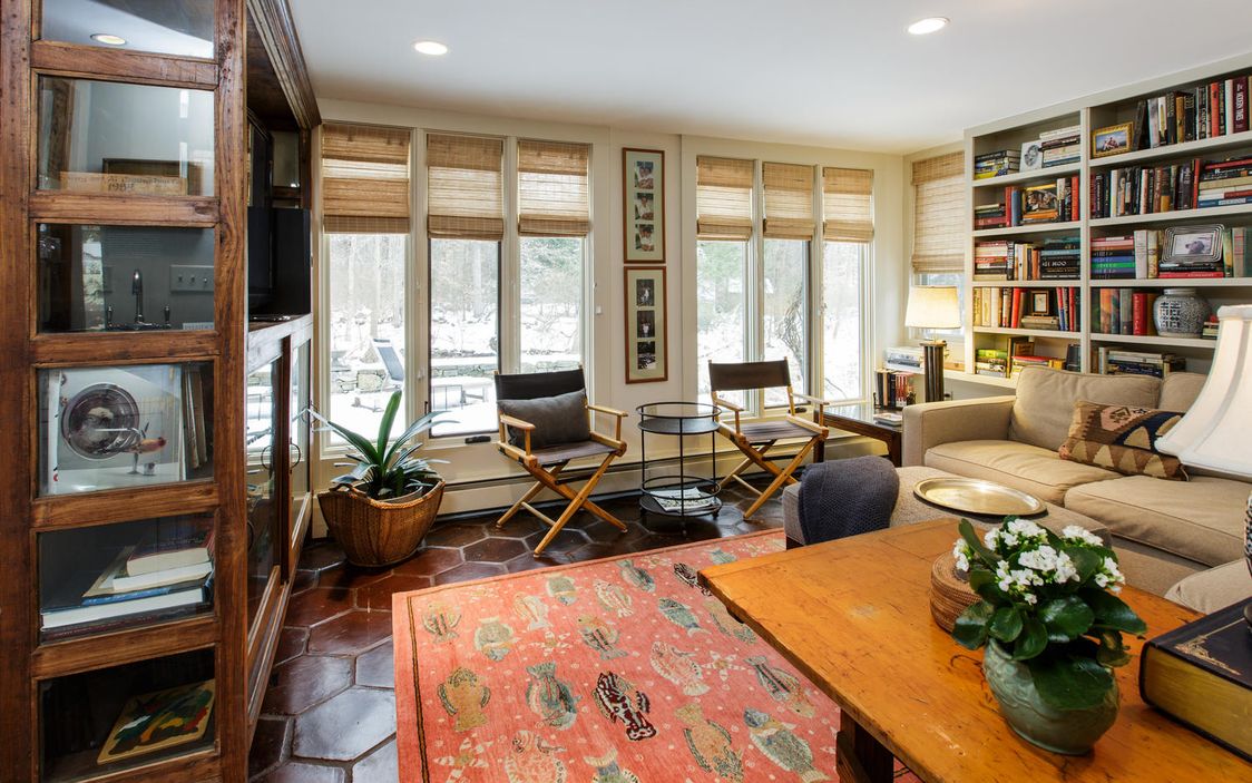 This sweet antique overlooks the Silvermine River in New Canaan, within walking distance of the newly reopened GrayBarns Inn and Tavern, as well as the Silvermine Arts Center. The circa-1846 Gothic Revival cottage started life as a humble harness shop—and still sports rough-hewn ceiling beams, stone interior walls and an original fireplace. Architect Rob Sanders’ vision was “a new house wrapped around an old house” and he realized it beautifully, especially in the all-white kitchen with its marble countertops, expansive island and easy access to a deck with views over the river. The property, which also offers a stone-wrapped terrace, an artist’s studio and a putting green, is listed for $1.149 million with Lisa Ferrante and Judy Dunn of Houlihan Lawrence.