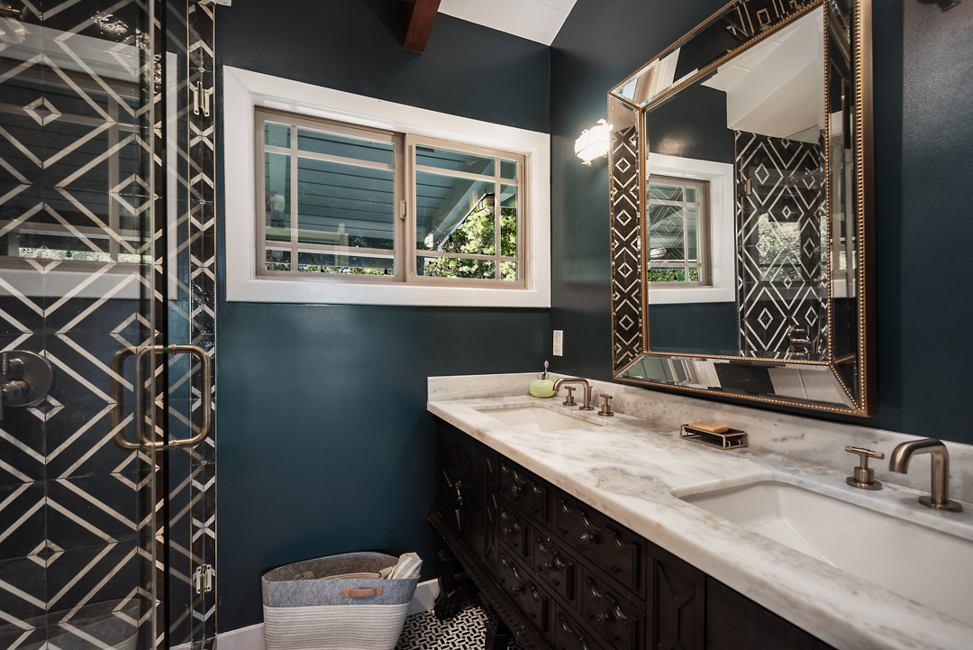 This is the first West Coast home the couple purchased as NYC transplants. Cooper, originally from England, is an award-winning writer, director, producer, and actor with credits in Mamma Mia! and CSI: NY. Brophy hails from Ireland and is a writer, producer, and actor, former restaurateur (who once operated Montauk’s iconic Surf Lodge). In 2020, the duo reimagined their California residence beautifully and now describe its style as “James Bond villain meets exiled Italian count.” Adding to its theatrical flair, they even founded their production company, Idyllwood Pictures, out of the home.