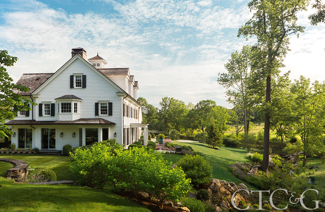 “We’ve lived in Connecticut for 12 years, and this is our fourth home,” says Jim Hoffman. The real estate developer and construction company owner is partners in work and life with designer Doron Sabag and renovated this Greenwich house into a “cautiously modern” space. It makes sense that a design team would end up selling most of the houses they work, but this house, which sits on 14 acres adjacent to 240 acres of Audubon-protected land with sweeping views of a pond, hills and trees, is different. “People have threatened never to come see us again if we move,” Hoffman says.