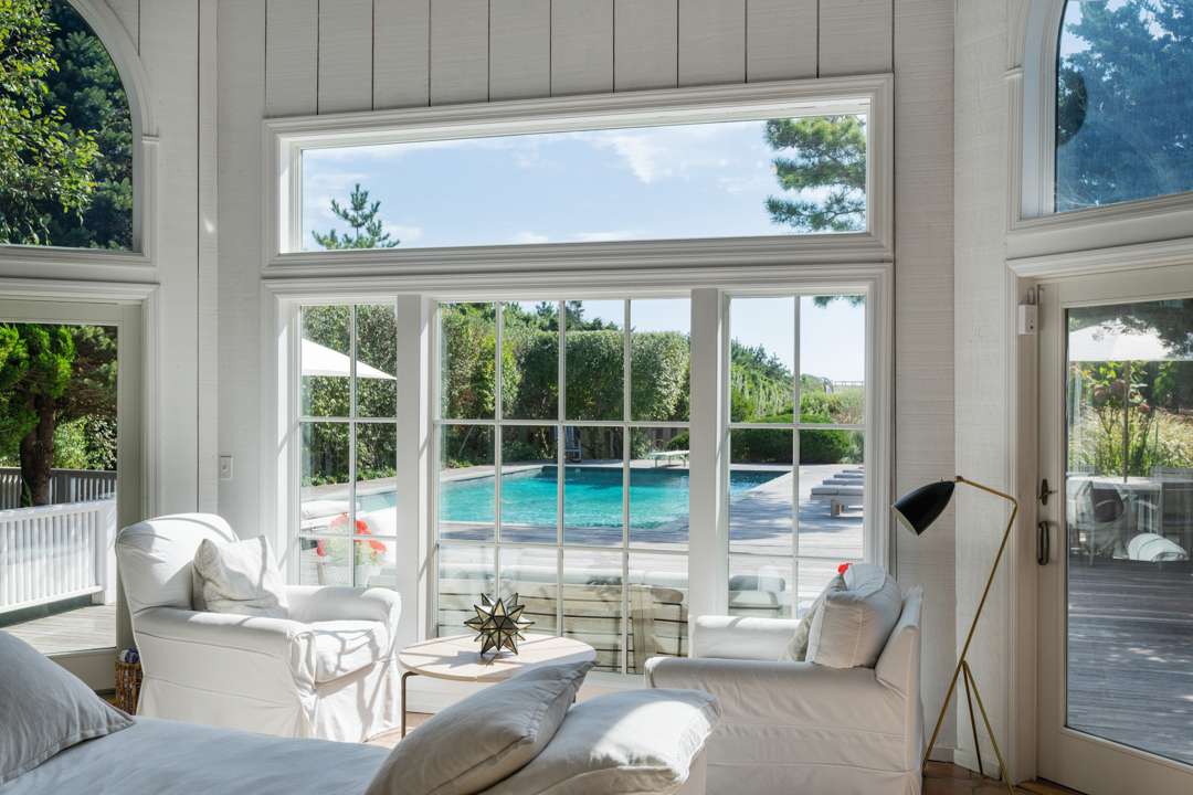 This breezy escape is on the beach side of coveted Dune Road. While the home itself sits closer to the road, the lot spans a total of 0.71 acres and a private boardwalk makes for easy and convenient walks to the beach. What makes it even more unique is that it is one of the area’s few properties that also has deeded access to the bay across the street—with a private dock on the Quogue Canal.