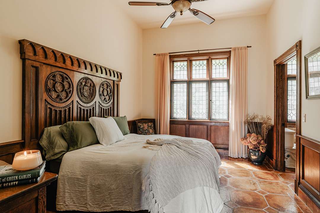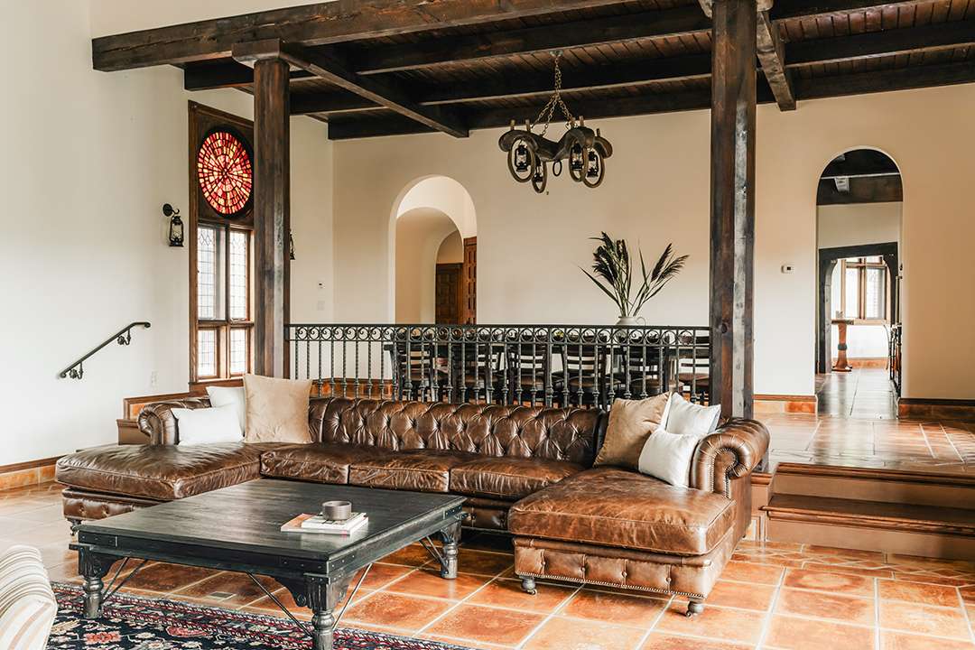 Stretching across over 300 acres, the estate is made up of the main home, a guesthouse, and a vintage stone cottage and feels like a world of its own. Brought to life in 2008, the compound exudes old storybook charm thanks to its stone facades, enchanting gardens, and mix of rustic, rich-toned interiors and airy farmhouse vibes.