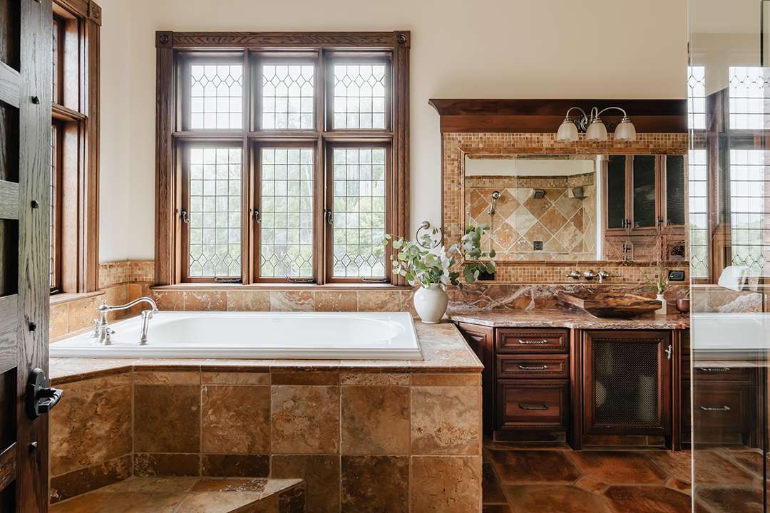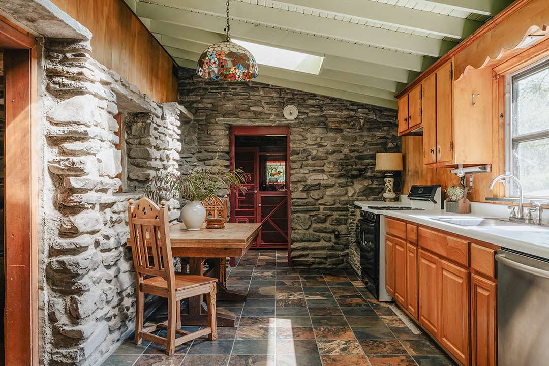 Brown is the “it” color of 2025, which is good news for buyers looking here. The four-bedroom main home was custom built, featuring red oak wood doors, soaring ceilings, and tons of charming nooks and crannies for optimal coziness. Channeling the rustic interior trends of 2008, a rich blend of brown tones and statement-making stone contribute to the grand yet warm feel, while open concept spaces make it a given for entertaining.
