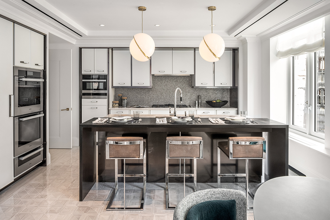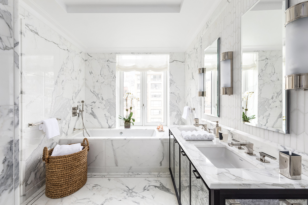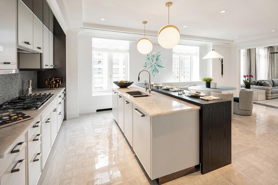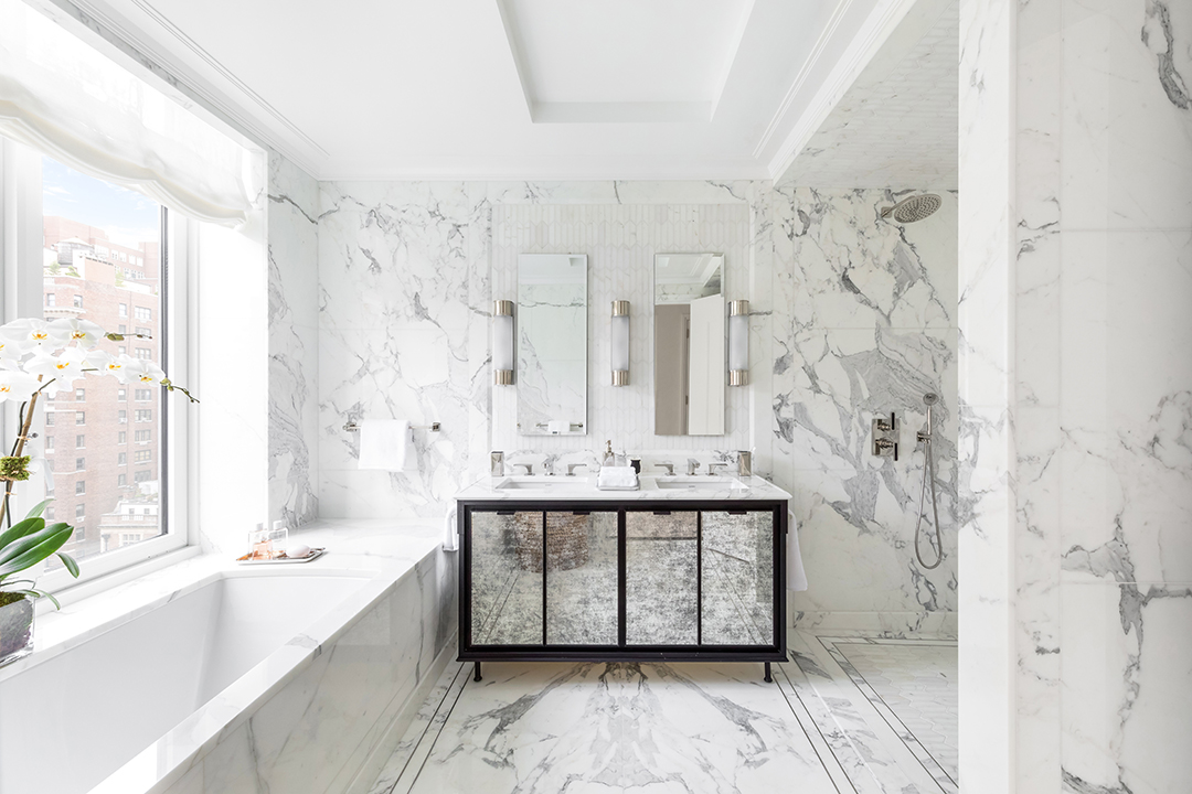 In the heart of Park Avenue’s Historic District, a new-build luxury condominium is catching people’s eyes. Built by architectural firm Beyer Blinder Belle, renowned for their restoration of Grand Central Station and The Empire State Building, and designed by the award-winning David Collins Studio, 1010 Park Avenue stands out for it’s unique traditional, yet modern design. The pristine units are all luxurious, full-floor residences, and one such beauty is now on the market for $18 million.Perched high on the tenth-floor, the 3,881-square-foot apartment boasts four bedrooms, four and a half bathrooms and was decorated by Pembrooke & Ives. The magnificent space exudes luxury from the private elevator landing lobby to the exquisite details, which include custom crown molding and Versailles parquet flooring. Grand windows allow for sun to flood into the rooms illuminating the stark white walls that provide an open and airy feel to the home. Modern interiors accentuate the minimalistic design and create a distinct fluidity in the residence.The kitchen features tile flooring with beautiful white cabinets in contrast to the dark countertops. Meticulously crafted with the finest finishes and materials, the bathrooms boasts marble floors and marble walls creating a lavish aesthetic that carries seamlessly through the home.This full-floor, brand new apartment is available through the 1010 Park Avenue’s website.