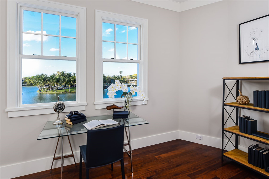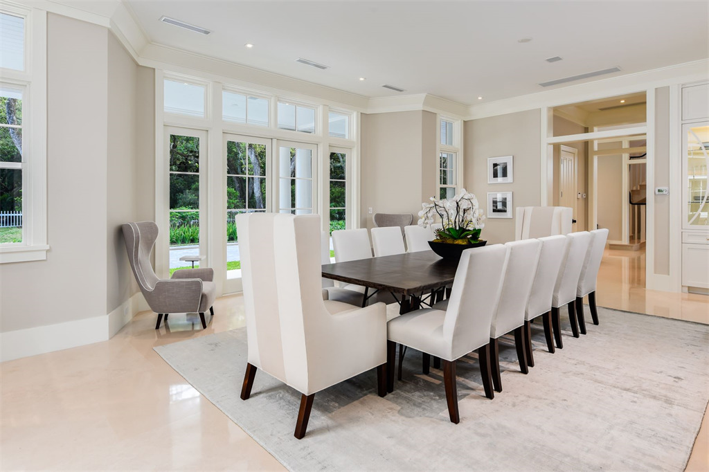 Originally listed in September for $9.25 million, the seven-bedroom, eight-bath home now sits on the market at $8.495 million. Located in the guard-gated Hammock Lake community, the Hamptons-esque property boasts 11,269 square feet of living area and sits on .93 acres of lakefront land.