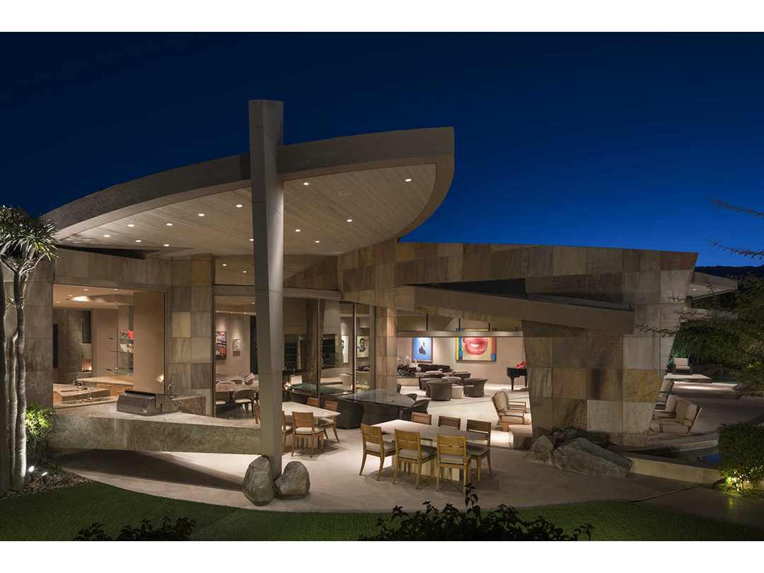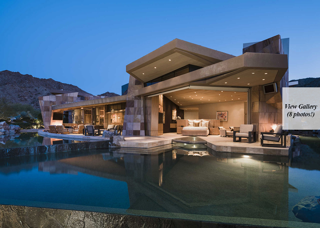 Want to own a home in Palm Desert right on an exclusive golf course that a famous producer built and called home? Well, you just missed your chance since the late Jerry Weintraub’s unique 9,152-square-foot house just sold for $6.825 million. You can put a dollar amount on the property, but it’s pretty priceless to know that the marvelous home has hosted icons like George Clooney and Matt Damon. Considering Weintraub produced The Karate Kid and Ocean’s Eleven, many other A-listers may have been entertained at the abode.Looking at the exterior, the color blends into the desert, but the geometric angles automatically set it apart from anything else you’ve seen before. Weintraub, who passed in 2015, designed the house with architect Guy Drier and had very specific ideas that make it the lavish spread it is today. The pool sits so snug to the house that the producer could step right out of the master suite and into the water. Spaces geared toward entertaining were also a top priority, which is easy to see with huge rooms boasting pocket doors that open to the outdoors. Hollywood stars mingling under a starry night, what could be more glamorous?As well as gaining an incredible 6-bedroom, 8-bathroom stunner, the new owner is now a part of the ritzy Bighorn Country Club. Perched above the 16th Hole and boasting both mountain and valley views, this sweet pad can be the most hoppin’ spot or the most tranquil; truly the best of both worlds.Richard Bartholomew, David Findley, and Mauricio Umansky of The Agency had the Hollywood legend’s unparalleled listing, which Mansion Global first reported sold.