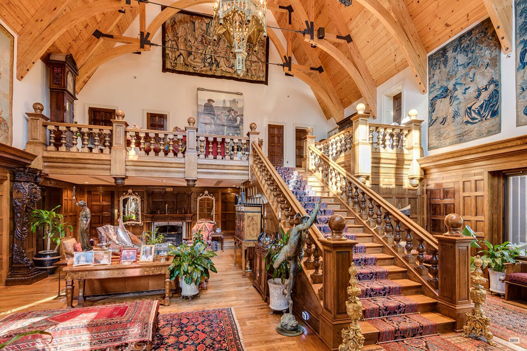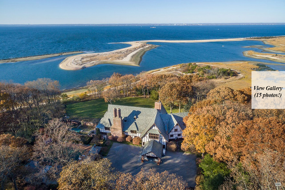 The 47-acre property where Brad Pitt and Angelina Jolie lived with their children for a stint has hit the market for a whopping $55 million. Way before the high-profile couple split, they resided in the 20,000-square-foot manse in 2009 while Jolie filmed parts of Salt in the area.Since the duo never did anything small, it’s no surprise that the Lloyd Neck abode, dubbed Sassafras, is grander than grand. The entrance of the Tudor-style house immediately impresses with soaring, 48-foot cathedral ceilings. With eight bedrooms, eight full bathrooms, four half bathrooms, and two guesthouses, it’s clear the home was roomy enough for the A-listers’ brood. The master suite offers serene views of Long Island Sound and Connecticut, while the bustling city is just an hour’s drive away or 15 minutes by helicopter. Outside, a wraparound terrace, pool, private beach, exercise path, and lush gardens offer something for every whim. Luxury is further elevated at the home’s pier, which the listing claims can accommodate three jet skis, an 80-foot motor yacht, 24-foot sailboat, and a 30-foot speedboat, and two maintenance/chase boats with three additional moorings. Philip Laffey of Laffey Real Estate and Sami Hassoumi of Brown Harris Stevens have the listing. NY Post first reported the story.
