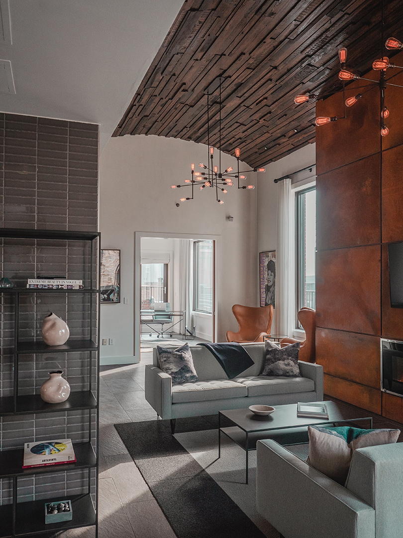 The loft-like Penthouse is surrounded by the New York City skyline, offering stunning views of the Empire State Building to the south and the Chrysler Building to the north. The wrap-around terrace at the Penthouse, which embraces the entire floor, includes a barrel vaulted ceiling with incredible chandeliers and a modern fireplace, a full stainless steel Chef’s kitchen, private elevator access, a master bedroom suite with an oversized bathroom and tub, a walk-in shower, a loft-styled living room, and tons more.