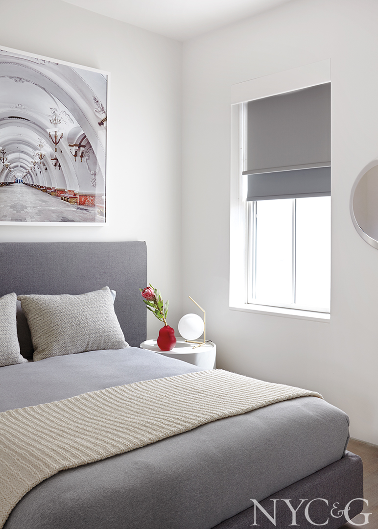 Libert had experience renovating his family’s residential investment properties, though admittedly at a more basic level. Fearlessly, the couple abandoned the developer’s scheme for Shaker cabinets, factory lights, and wooden moldings in favor of sleek museum-inspired details tailored for their growing art collection. They skipped window casings and also eschewed baseboards in favor of a shallow reveal at the base of the wall. “Anderson and I are both perfectionists, and we basically made it a lot harder to finish,” Paindiris admits. “Without Sergio, it would have been a nightmare.”
