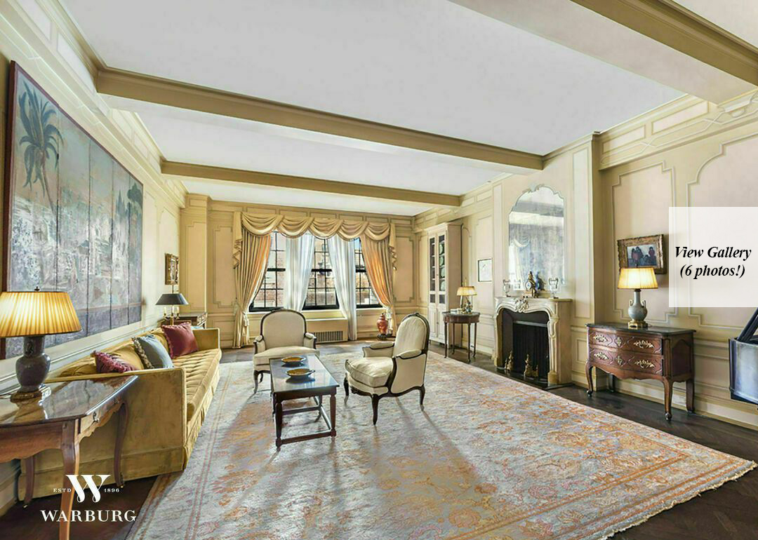 This stately apartment at 888 Park Avenue just hit the market for $9.45 million and it’s a beauty. Perched in a coveted 1926-built co-op, the residence boasts 12 rooms, including five bedrooms and four baths that all shine with elegant pre-war style. Dressed with ornate detailing throughout, this home is begging for glamorous homeowners with a love of grace and historic charm. Perhaps also a love of clothes, since the light-filled abode has six walk-in closets.A semi-private elevator will lead potential buyers into a grand gallery followed by an expansive living room with a wood-burning fireplace. The floorplan also holds a generous sized dining room and enchanting library. As you glide through the rooms, which all boast 10-foot ceilings, stunning views of Park Ave and 78th Street will abound.One wing of the apartment is dedicated the spacious bedrooms with their en suite baths, with the master suite no doubt being the crown jewel. Over in the staff wing, there are two bedrooms, a dining area, laundry room, bathroom, and service entrance. The possibilities for this wing are endless as it can easily become the perfect place for guests if your household doesn’t require live-in staff.Building amenities include a full-time doorman, live-in super, and gym. Plus, it’s pet friendly so you can pamper your furry family member here, too. To nab this property before it’s gone, contact Susan Landau Abrams and Michael Abrams of Warburg Realty.