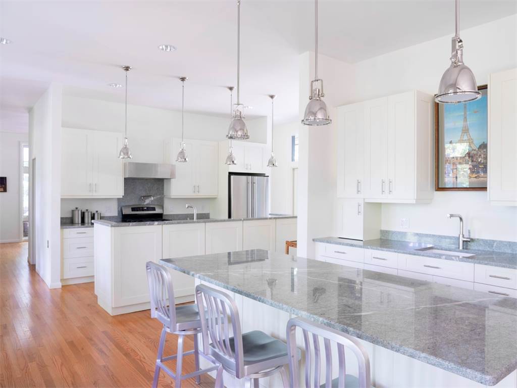 New Canaan’s best riverfront listing is one of the town’s midcentury moderns—built late in that era, in 1967, by architect Richard Bergmann, his first commission after he left the firm of Eliot Noyes, one of the Harvard Five architects. Called Latham House, it’s sited on a high perch on 4.28 acres overlooking the Noroton River, as well as a private pond, but is still walking distance to town. Ten years ago, the then-owner asked Bergmann back to build an addition to the home, which now measures nearly 6,000 square feet and includes five bedrooms and six bathrooms. Susan Blabey and Becky Walsh of William Pitt Sotheby’s International Realty share the $2,495,000 listing.