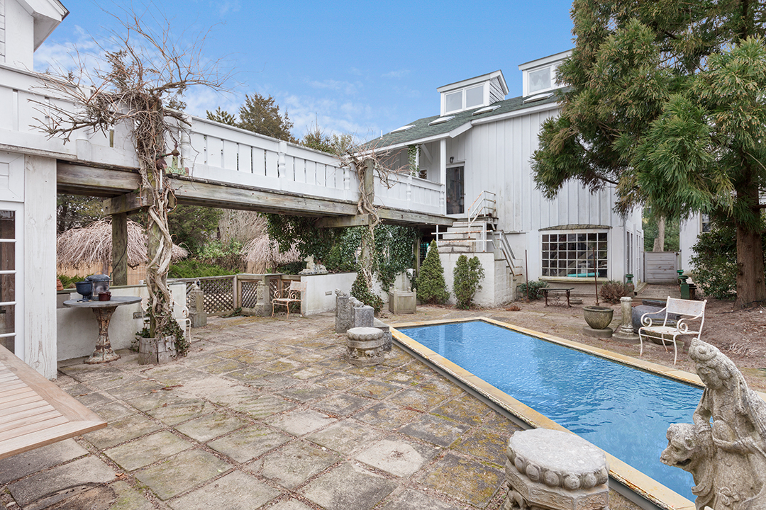 The Sag Harbor home of art and antiques dealers Michael and Elfi Eicke is known to HC&G readers for having a rich history. The property was profiled in our July 1, 2011 issue and is now on the market for $4.2 million. Built in the 1880s, the East End residence started out as a fisherman’s saltbox and became a haven for the European transplants in 1994.Prior to the Eickes taking ownership, painter Susan Rothenberg owned the house and commissioned architect Lee Skolnick to build the property’s two-story art studio, bringing the total living space to 3,500-square-feet. The main residence charms with a layout of small-scale, cozy rooms that stay true to the home’s history. A sky-top bridge connects the house to the studio, which current owners are using as a guest house and a place to keep their art collection. Between the structures, a European-style courtyard boasts a pool and outdoor lounging areas.Next, the late neo-expressionist Louisa Chase, whose work is featured in the Museum of Modern Art, the Whitney Museum, and more, called this gem home as she rose to prominence in the 1980s until she sold it to the Eickes. Chase dubbed the estate “Camp Lucy” after her beloved dog, a name that has stuck ever since.Barbara Lobosco and Robert Evjen of Douglas Elliman have this special listing.