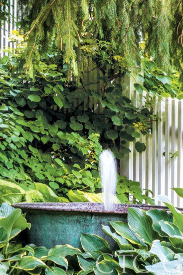 Drendel and Conway shipped a copper cheese pot home from a vacation in Provence to create a fountain.