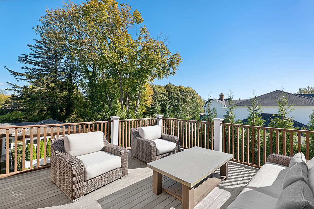 An idyllic home-for-now, this luxurious address offers a dream East End summer lifestyle. Hedgerow Exclusive Properties holds the listing.