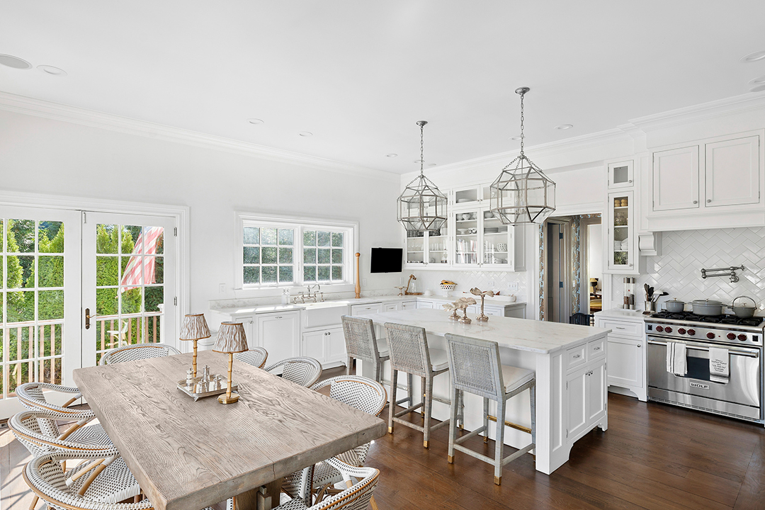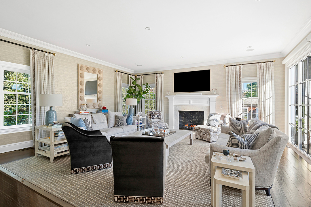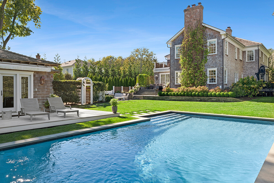 For the high price, summer guests will gain beautiful grounds: A heated gunite pool, stone patio with fireplace, and a pool house promise easygoing yet elevated al fresco living. After a long day in the sun, renters can also relax with movies in the lower level media lounge.