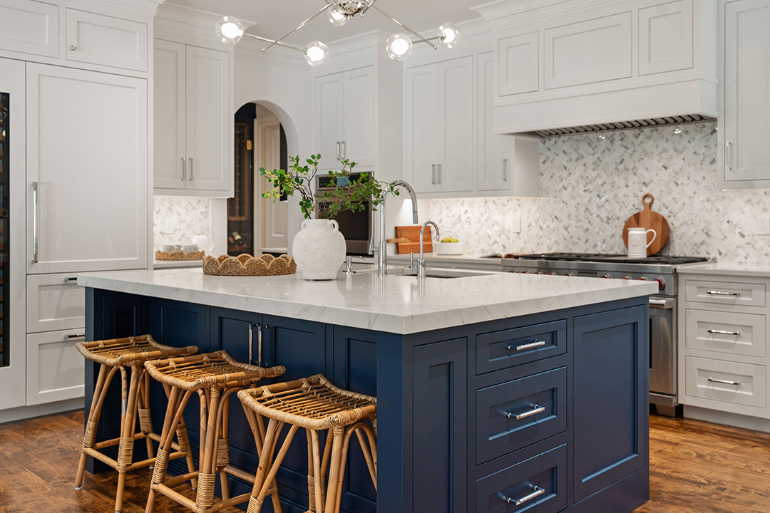 The restoration of Round Meadows, as its called, preserved the original architectural details while updating the kitchen and all mechanicals throughout the now seven-bedroom home. The result feels more transitional and fresh, yet the home’s nearly 100-year-old grandeur is still palpable.