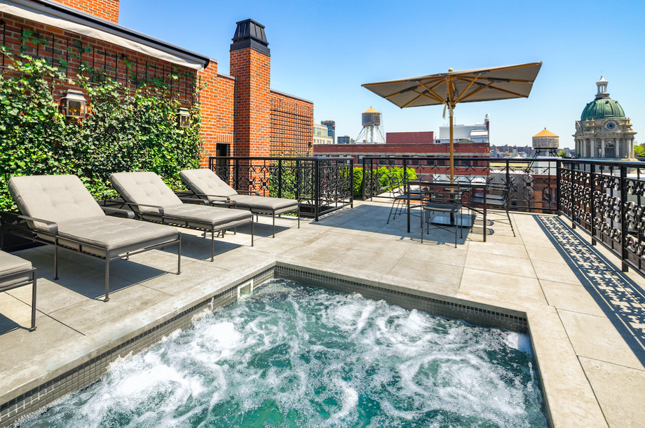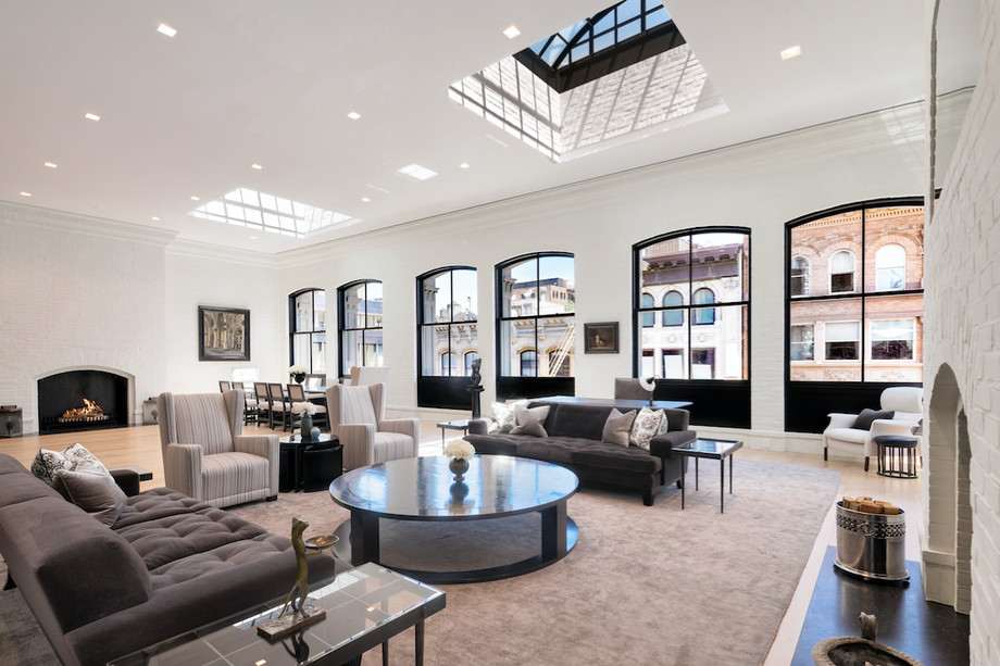 After over four years of renovations, this triplex penthouse in the heart of SoHo has finally hit the market, asking $65 million. Considering the owners scooped the property up in 2011 for a comparatively low $17 million, the condo experienced a major facelift. Located at 421 Broome Street, the space sits at the top of a pre-war, boutique building that offers the comfort of a full-time doorman and concierge.Built in 1873, 421 Broome has no shortage of charming period details. Rusticated arches, wide expanses of glass, and cast-iron balustrades create the building’s façade and help to inform its interiors. In the renovated penthouse, these features meet the modernized grandeur of custom steel doors, new oak floors, and a LaForge bronze stair railing. Even more stylish are the black granite countertops of the kitchen, an import from Germany, and the Italian marble found in each of the apartment’s 6.5 bathrooms. Most wonderful of all, however, are the three custom skylights that bask the entire space with natural light.The 8,000-square-foot “vertical mansion” boasts four bedrooms and 20 custom closets, an unheard of amount of room for clothes in New York. The unit also features an impressive 3,700-square-feet of outdoor space, including a jacuzzi and a wood-burning fireplace, which are fun for outdoor entertaining any time of year.Shaun Osher and Emily Beare of Core are co-listing the apartment with J. Eric Becker of Corcoran Real Estate. NY Times first reported that the stylish SoHo penthouse hit the market.