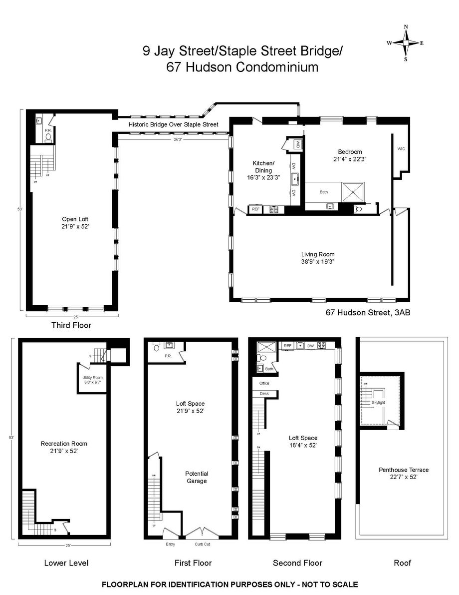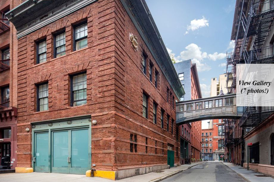 A legendary Tribeca townhouse that has been on and off the market for three years is back up for sale. Originally priced at $50 million, the 8,170-square-foot space is now wants $35 million, and if you’re wondering what all the fuss is about, the spread offers a rare feature that contributes to the high price tag. Connecting the home to a loft across the street is the historic Staple Street Skybridge, a windowed footbridge looming over its titular side street that comes with the sale, adding an ounce of eccentric intrigue.Described by Sotheby’s International Realty listing agents Kaptan Unugur and Mara Flash Blum as “a magical open canvas waiting for new ownership’s creative vision,” the property will certainly embrace any design style. The main property, the Tribeca townhouse at 9 Jay Street, is a four-story brick building with two curbs. Though the listing touts the possibilities of renovation, there is plenty already present to fall in love with; French doors and an eat-in kitchen mirror the old-world charm of the bridge and cobblestone streets just outside, while a roof deck offers sumptuous views of the city.A stroll across Staple Street via the bridge reveals the loft, located in a corner unit on the third floor of Hudson Street. The possibilities of this linked space are endless; an office optimally separate from the home or living quarters for live-in help are just two options that come to mind.Curbed first reported on the listing.