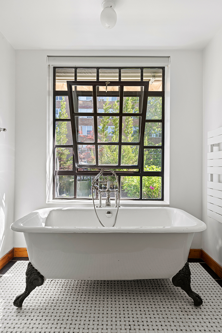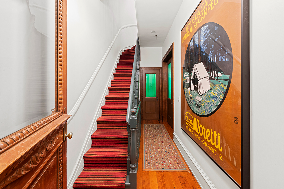 Hawke, who has starred in films like the Before trilogy and broken out as a respected director, lived at the four-story haven from 2005-2013. The current seller purchased it from him, and even kept some of Hawke’s design influence. Most notably, the kitchen’s Facsimile retro refrigerator and painted cabinetry, which nod to Hawke’s artistic sensibilities.