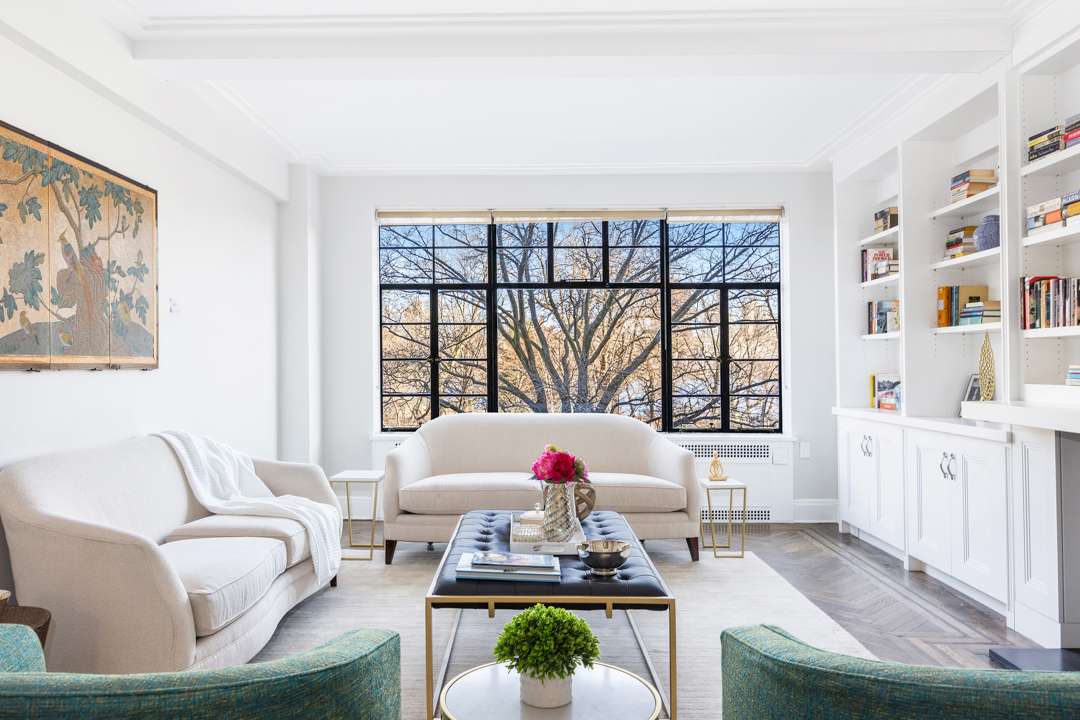 The well-thought-out floor plan spans 3,750-square-feet with four bedrooms, five full bathrooms, and two half-baths. Sixty feet of casement windows allow for soaking up views of the park. In fact, two of the bedrooms overlook Central Park with the Jacqueline Kennedy Onassis Reservoir in the distance. Other highlights include a private landing, wine cellar, formal dining room, ample kitchen, and an office (of course!).