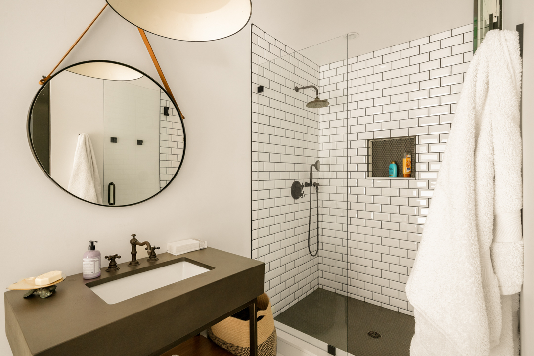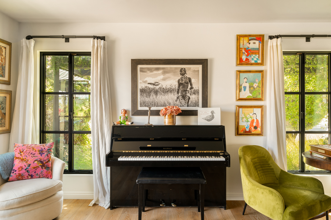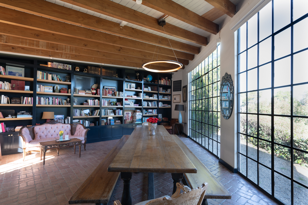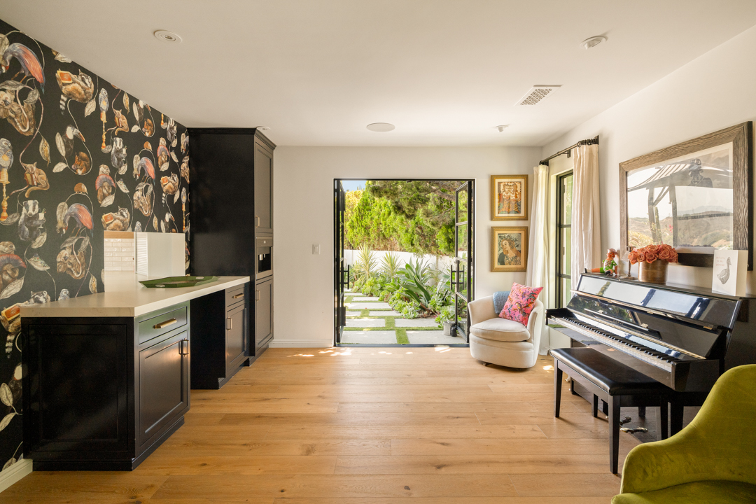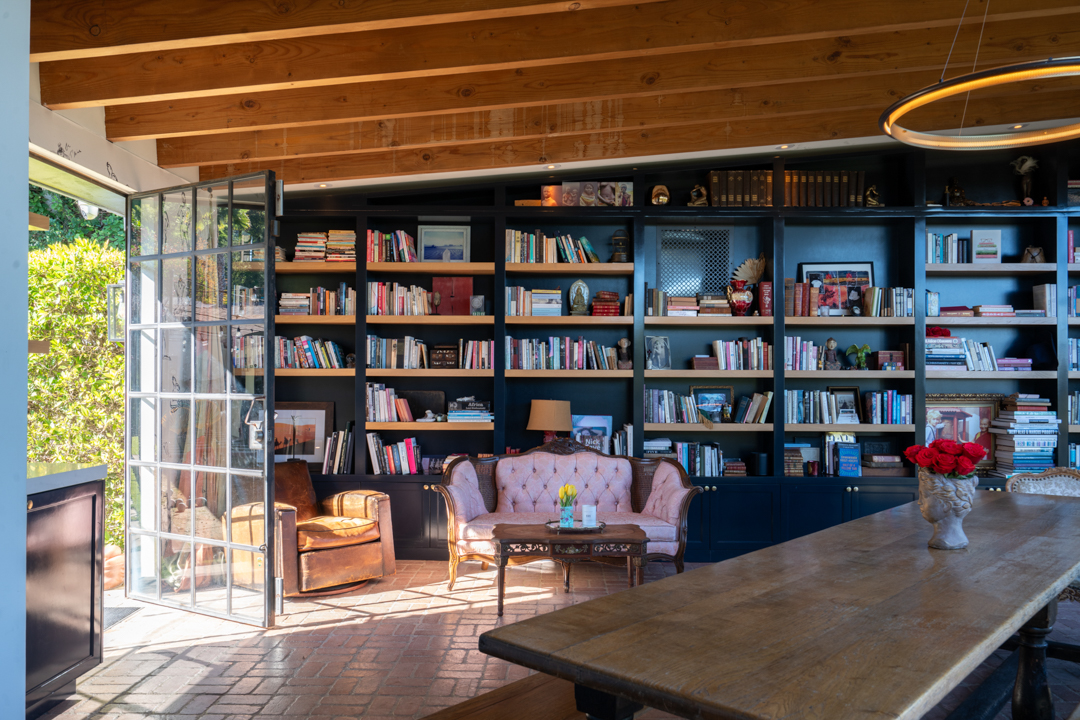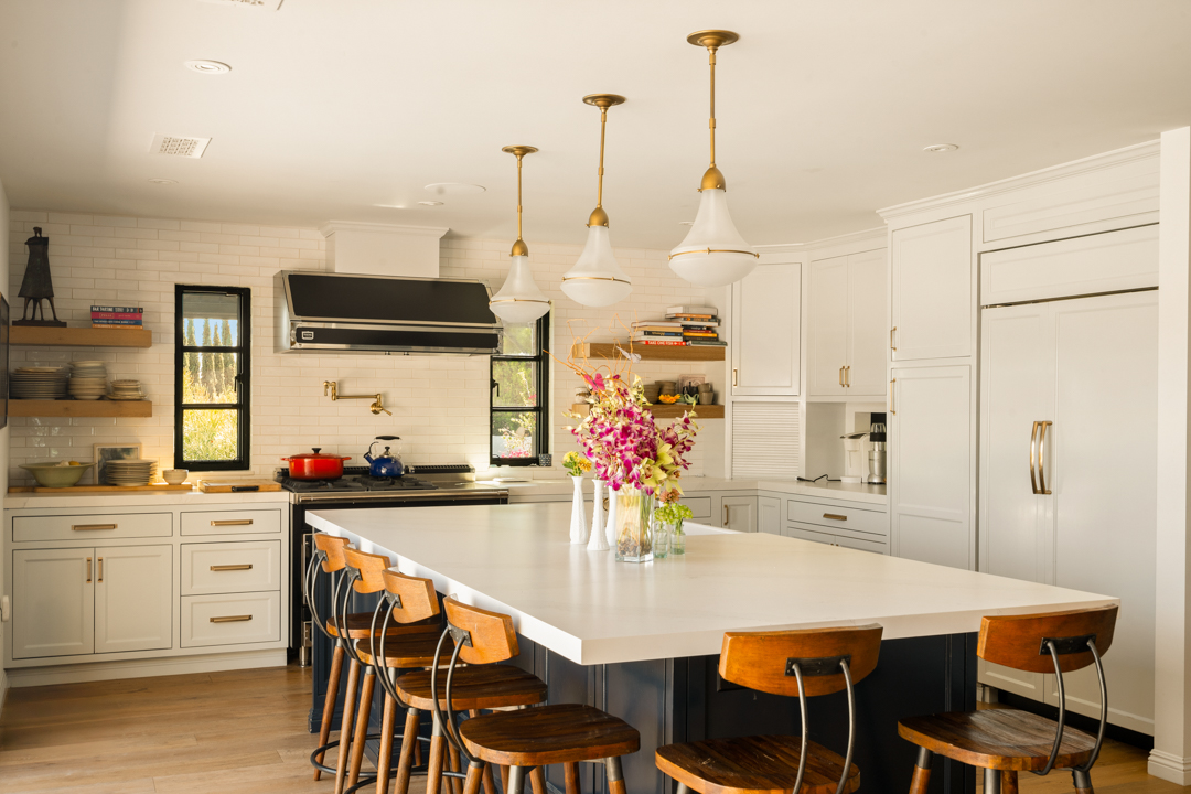 While the 2,555-square-foot home was originally built in 1969 (like many of the neighborhood’s residences), it has received an extensive interior and exterior refresh by the seller’s brother, Chris Bello of Bello Building and Contracting. Light floods the living areas, as floor-to-ceiling windows are featured throughout—including a wall of accordion doors overlooking the swimming pool, mountains, and view beyond. The kitchen is truly a chef’s kitchen… but, what would you expect when the owner of a three-Michelin-starred restaurant (Atelier Crenn in San Francisco) also lived here? Fit for easy gathering, it’s complete with a large island with seating for six.