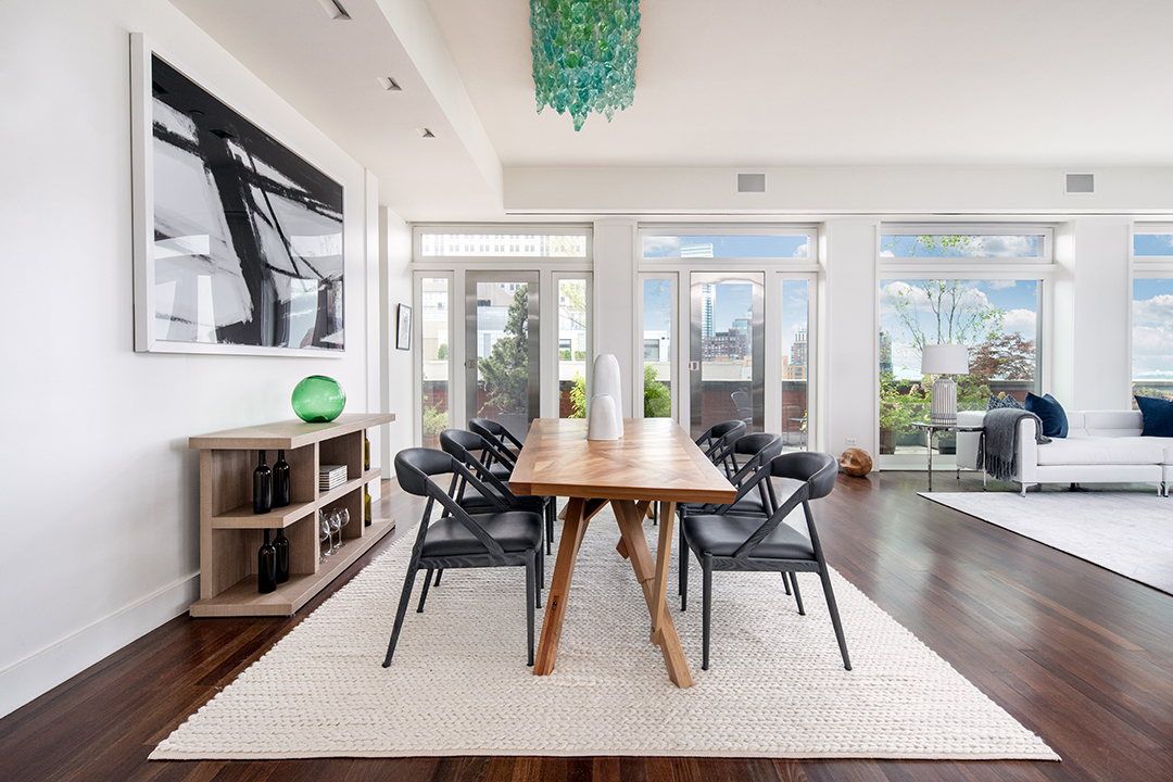 The penthouse was first listed in 2018 for $24.6 million, went through several price cuts, then popped up for sale again asking $18.25 million this past August. Across 4,000-square-feet of space, Streep had refreshed the home with new staging which eventually reeled in the right buyer. No matter how the walls are adorned, the apartment overflows with sunlight from floor-to-ceiling windows. A serene feel is also constantly present with sweeping views of the Hudson.