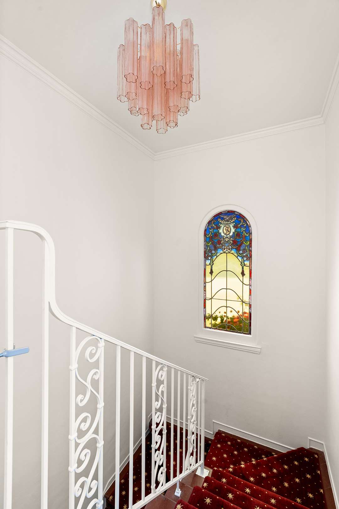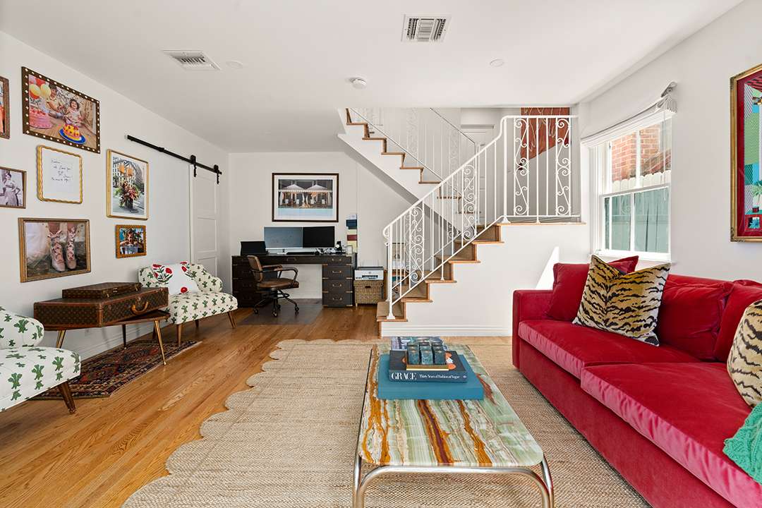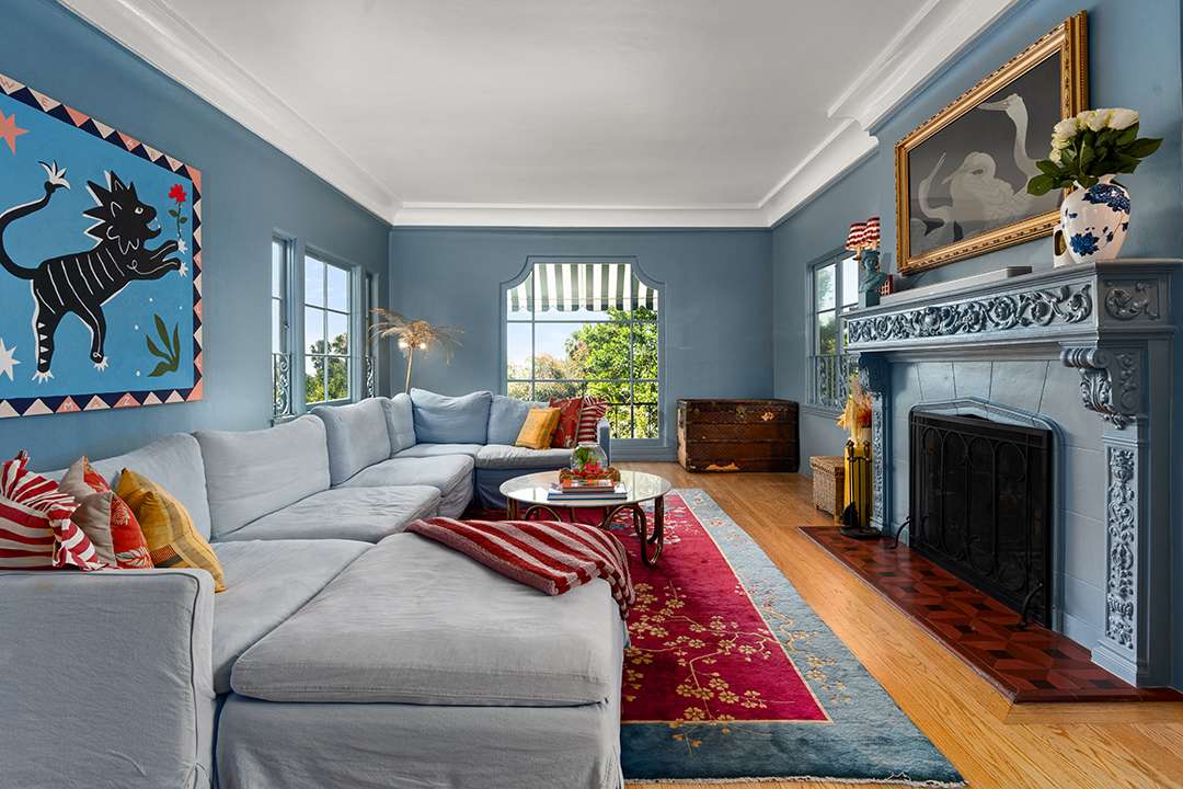 The home is currently owned by Naomi Kahn, daughter of billionaire businessman, Sonny Kahn, and is full of cheerful yet tailored panache. You’ll find stained glass windows and original crown mouldings that harken to the past. There are also an array of vibrant patterns and colors throughout the nearly 3,000-square-foot layout and spacious outdoor areas to relish in, calling for both laidback and lively enjoyment.