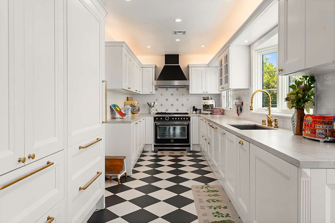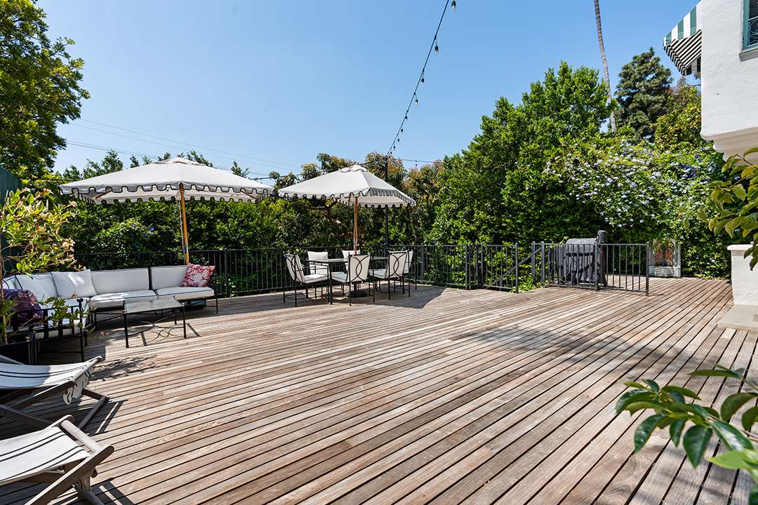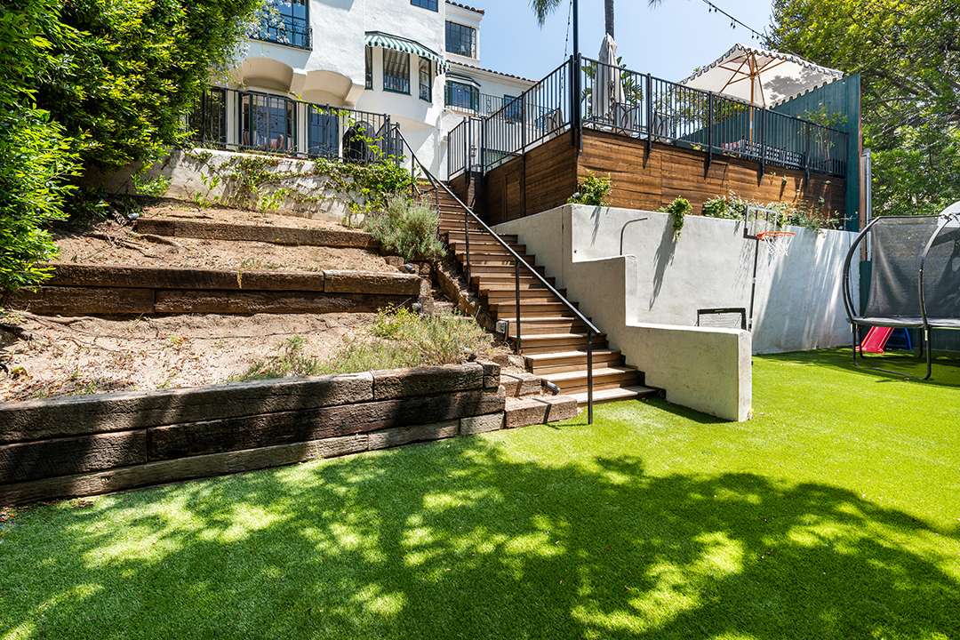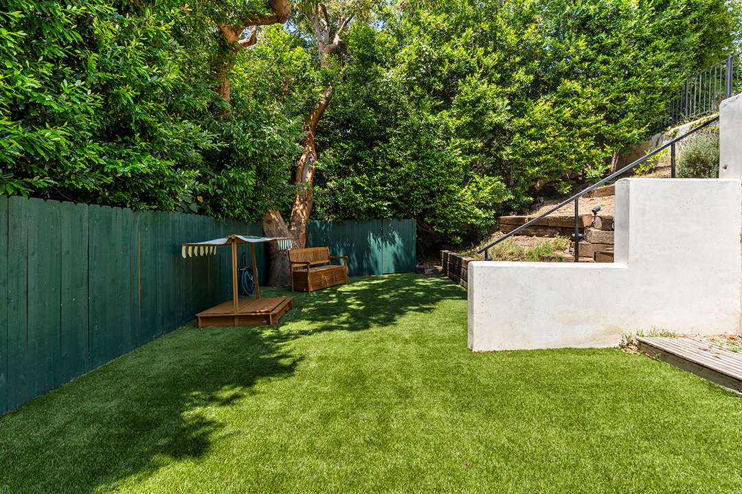 On a sunny L.A. day, the outside deck is ideal for taking in the sweeping city views while the turfed grass backyard provides plenty of room for little ones to play. That’s rare to find in the hills. Adding to the outdoor allure, the property sits on a cul-de-sac street and is just a short walk away from shopping, dining, grocery stores, and hiking trails.