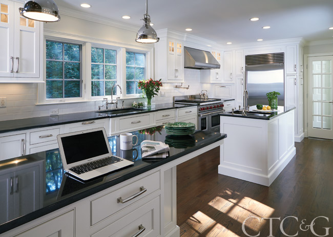 After a year of research, interviews with construction and remodeling agencies, then drafting a 20-page document, Beth and Marc Cutler of Greenwich hired Matt Giardana of Front Row Kitchens in Norwalk to design and execute the gut renovation of their dated ’70s kitchen. Upon completion, Beth (a longtime reader of this magazine) contacted us about the project… and, boy, were we impressed.