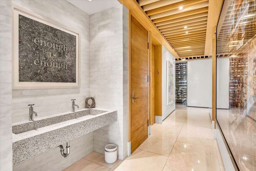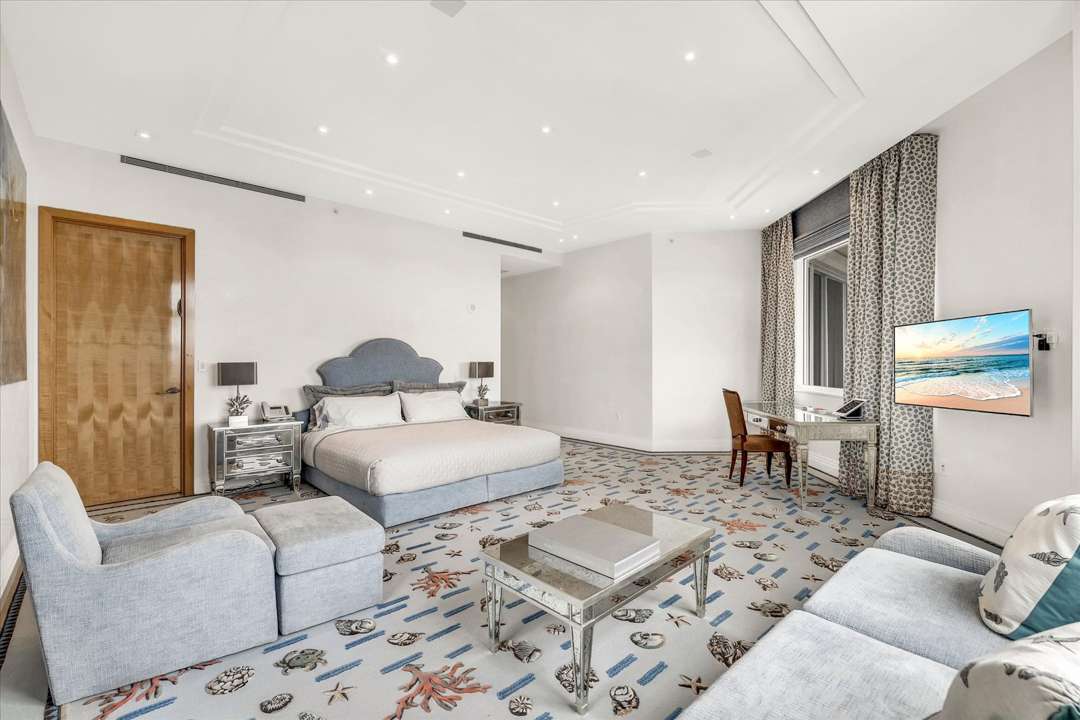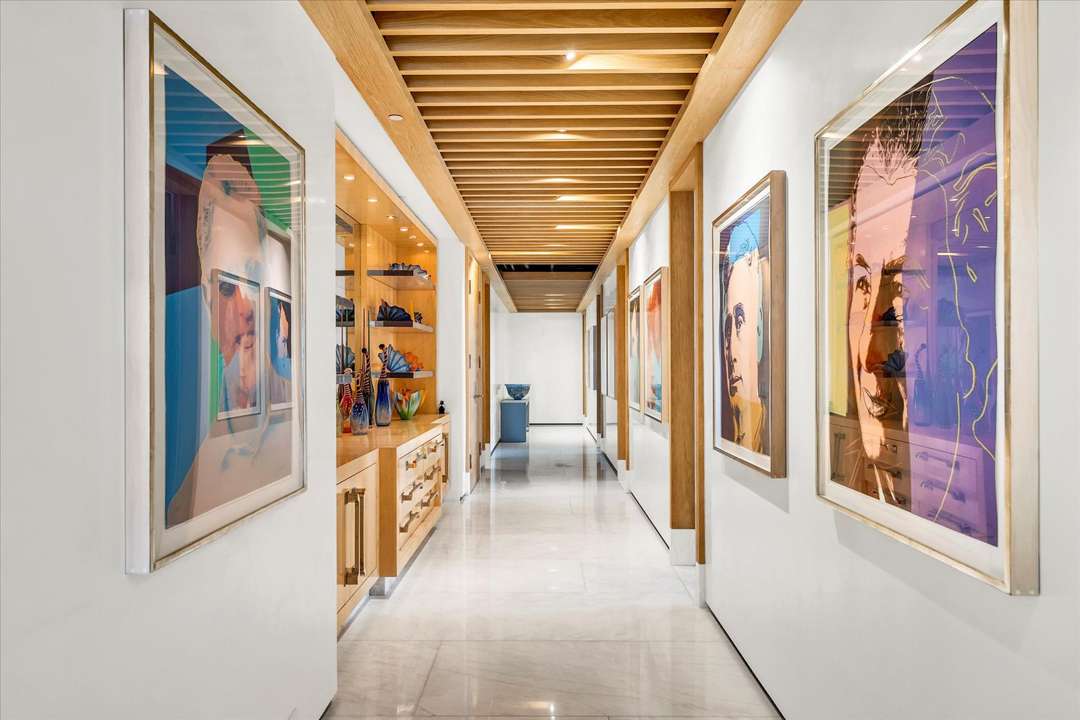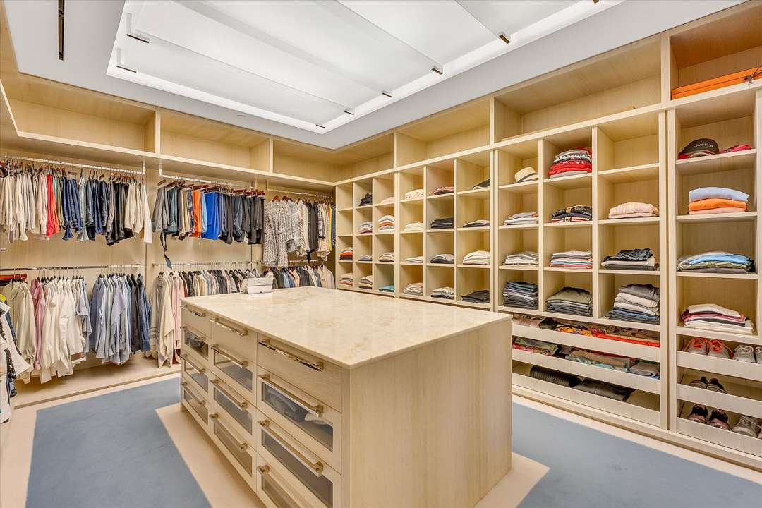 Designed by Geoffrey Bradfield, the 10,421-square-foot manse in the sky combines two penthouses, offers an additional 3,000-square-feet of terraces, and displays panoramic views of the Atlantic Ocean. Some eye-catching highlights are the large kitchen featuring dual islands, the contemporary great room with a large bar, and the spacious office fit for a high-profile exec like Schottenstein. The private spaces include four bedrooms with ensuite baths. And, of course, the closets are just what you might expect from the retail-giant seller.