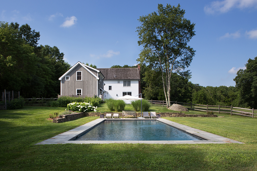 While Tittmann built his Morris home from scratch in 2006, the façade pays homage to the classic Connecticut farmhouse with its mix of white shingles, rustic shiplap and barn-like styling. But the 5,000-square-foot interiors have a modern heart, featuring a dramatic double-story dining room with a fireplace, an eat-in kitchen with a butler’s pantry and another fireplace, a theater with a movie screen, and a wine cellar. The nearly 20-acre grounds are also swell, especially around the saltwater pool and pool terrace. It’s listed for $2.995 million with Peter Klemm of Klemm Real Estate.