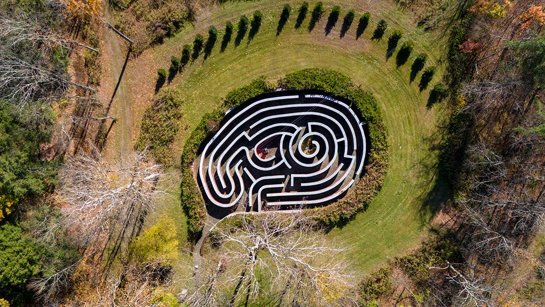 Dubbed ‘Erpf Estate,’ the expansive residence features 280 acres with sculptures sprinkled throughout but also magazine-worthy interiors in the Colonial farmhouse-style main home. The real masterpiece of the listing, however, is the world’s largest ever stone maze spanning 1,650 feet. Built in 1965 by British artist Michael Ayrton, it’s “the only one of stone since the 4th or 5th century B.C.” According to Robb Report, New York investment banker, Armand Erpf, had it created on the land.