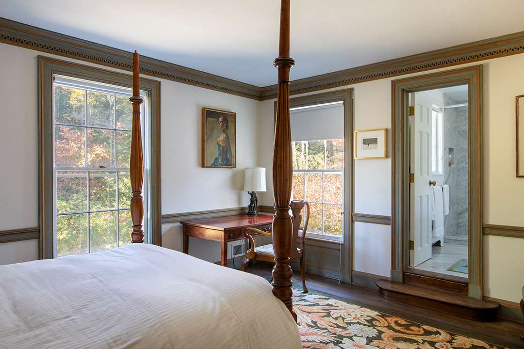 A beautiful staircase winds up the four levels of the home, which is topped panoramic cupola that captures views of the land in its entirety. The main home holds five bedrooms, while a carefully restored brick guest house has three separate bedrooms.