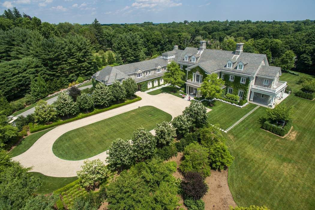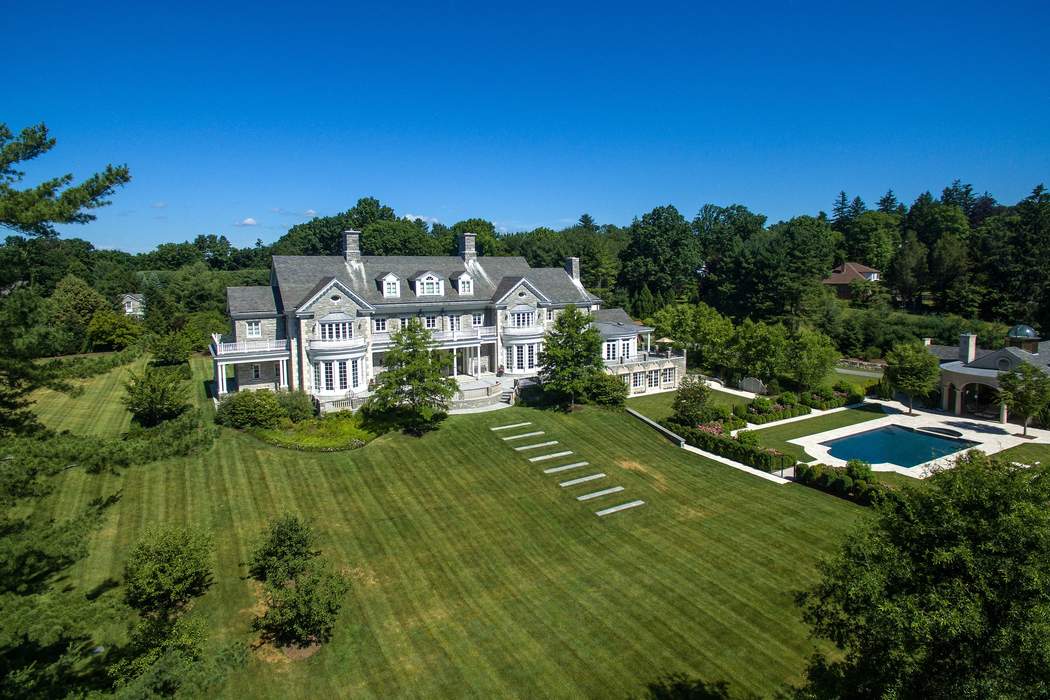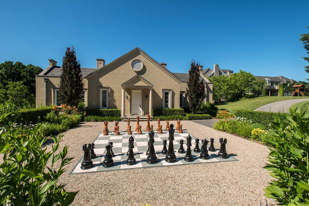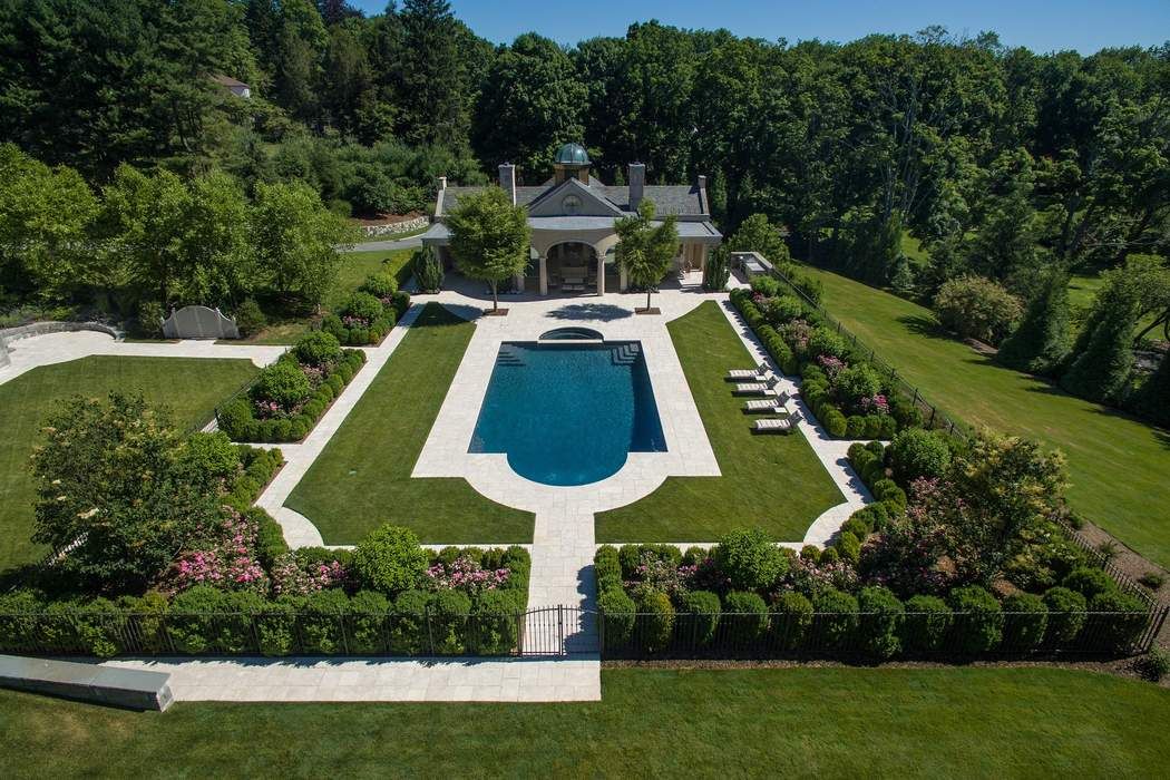 Driving up to this stately Greenwich property, the expansive circle drive and ivy-covered stone façade may make you feel as though you should be riding in a circa-1910 Rolls Royce. It transports you to a time full of elegant dinner parties and lords and ladies, however, 110 Clapboard Ridge Road was actually just built in 2011. The stunning 5.34-acre estate combines romantic Georgian style with modern luxury, and is currently on the market for $24.995 million.The main house and the guest house offer a total of 16,863-square-feet of living space, eight bedrooms, seven full bathrooms, and six half bathrooms. Rooms are large in scale, starting with the two-story entry hall and continuing as you enter the huge living room with two fireplaces.While the main floors impress with beautifully furnished formal spaces, the lower level is where the fun lives. Enjoy a home theater, wine cellar, gym, family room, indoor pool, and sauna. Step outside and find an oversized chess set, luxurious porches and an exquisite pool.Leslie McElwreath of Sotheby’s International Realty has the impeccable listing.