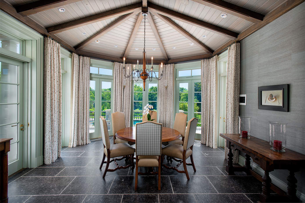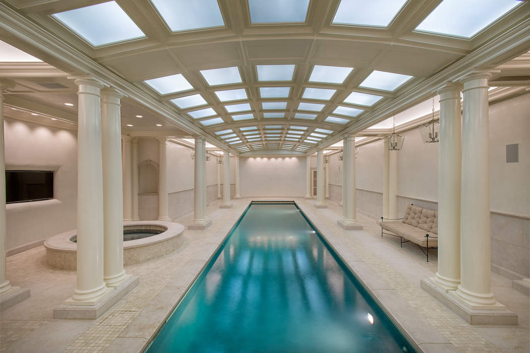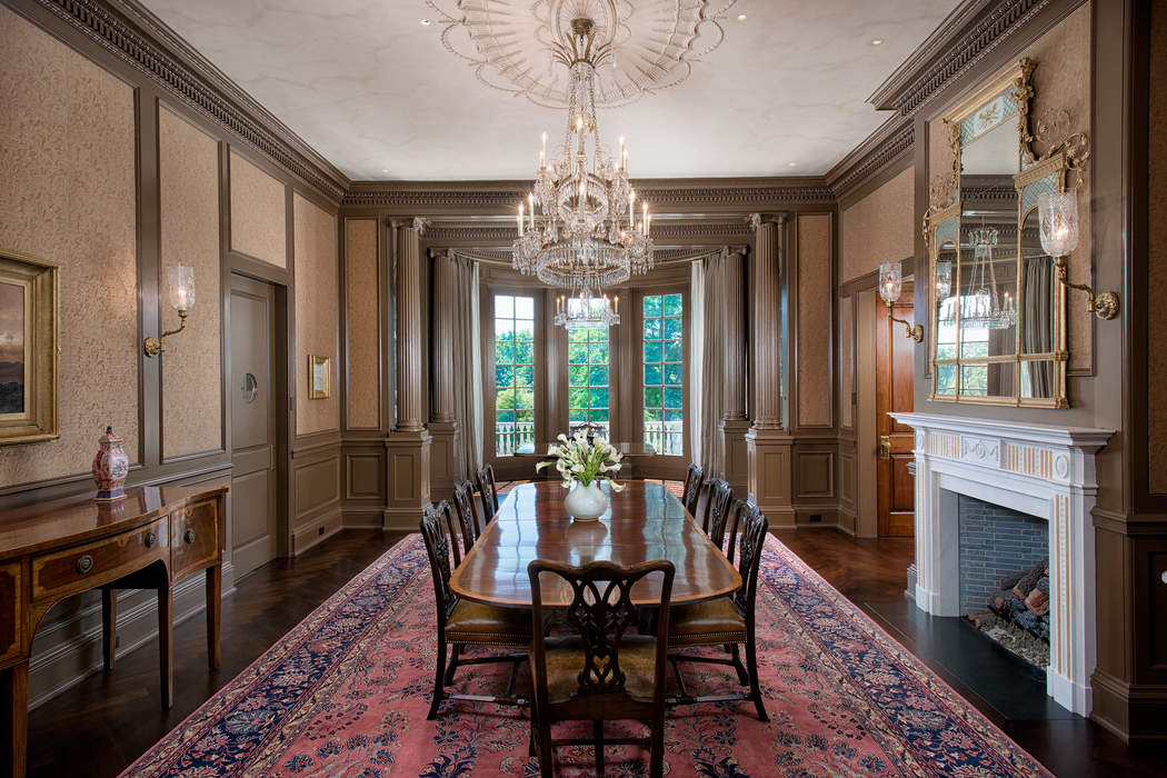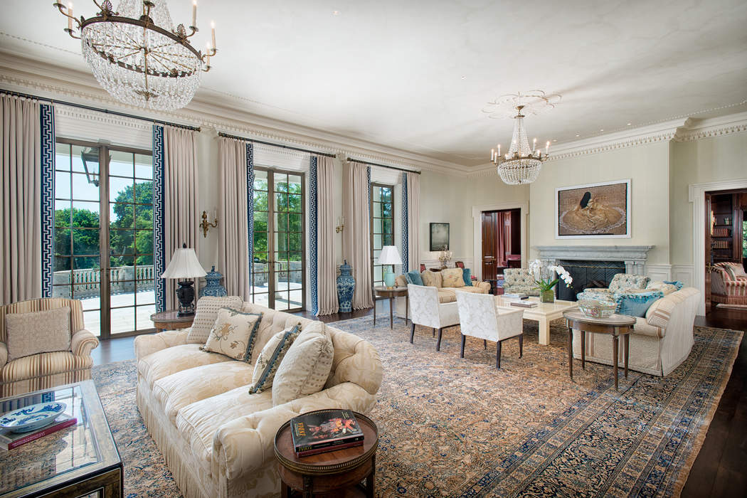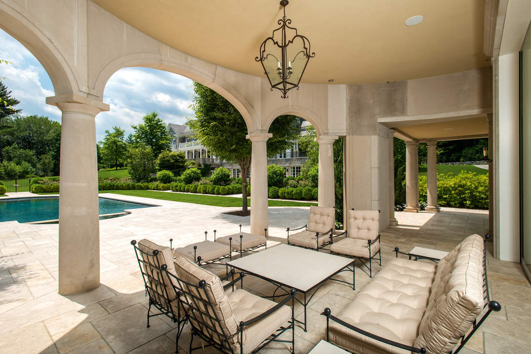 Driving up to this stately Greenwich property, the expansive circle drive and ivy-covered stone façade may make you feel as though you should be riding in a circa-1910 Rolls Royce. It transports you to a time full of elegant dinner parties and lords and ladies, however, 110 Clapboard Ridge Road was actually just built in 2011. The stunning 5.34-acre estate combines romantic Georgian style with modern luxury, and is currently on the market for $24.995 million.The main house and the guest house offer a total of 16,863-square-feet of living space, eight bedrooms, seven full bathrooms, and six half bathrooms. Rooms are large in scale, starting with the two-story entry hall and continuing as you enter the huge living room with two fireplaces.While the main floors impress with beautifully furnished formal spaces, the lower level is where the fun lives. Enjoy a home theater, wine cellar, gym, family room, indoor pool, and sauna. Step outside and find an oversized chess set, luxurious porches and an exquisite pool.Leslie McElwreath of Sotheby’s International Realty has the impeccable listing.