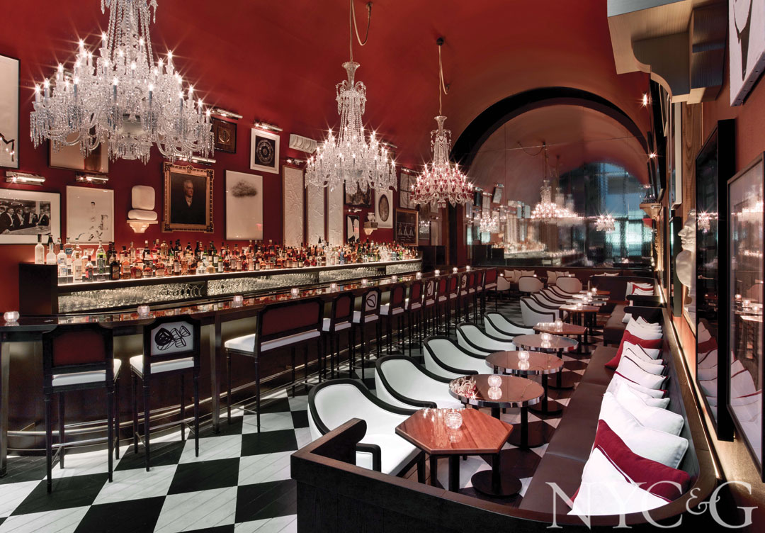 Ambience: The same players on the St. Barth/St. Tropez circuit haunt this high-life French salon, where blond Scandinavians and Ukrainian models perch along the plush 60-foot bar, Baccarat chandeliers glittering overhead.