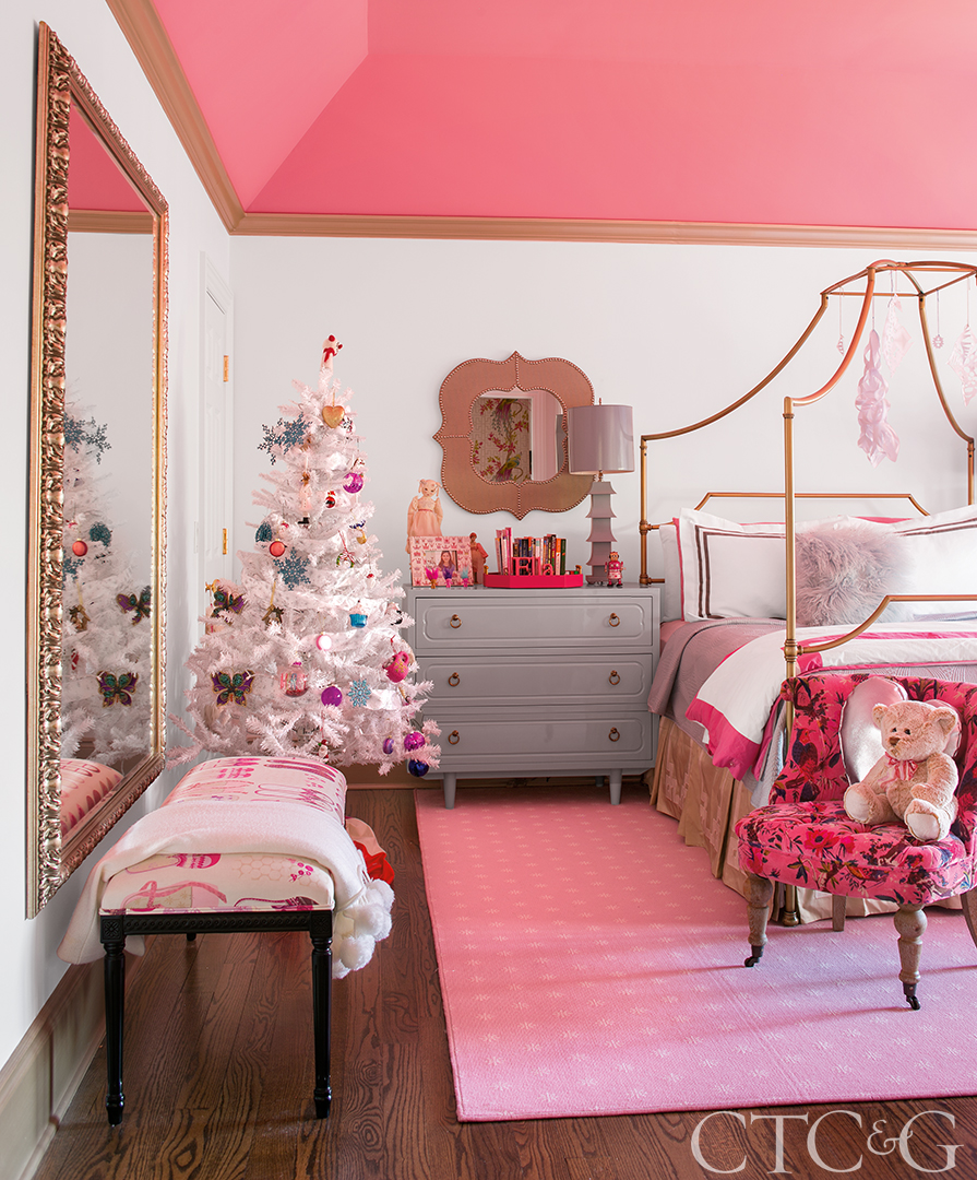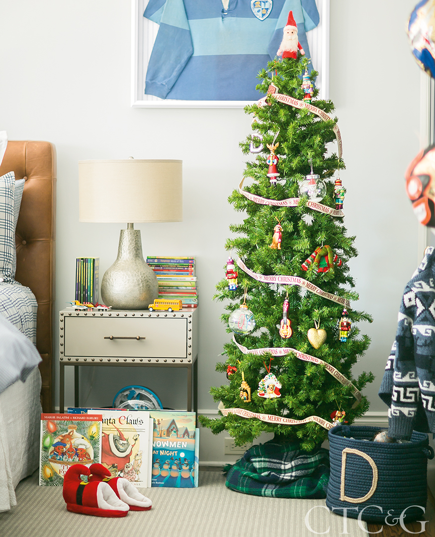 And that’s just one of four trees in the house—another occupies the second-floor landing, two more are in the children’s rooms, decorated with ornaments of their choosing. Last year, Ella, opted for a white tree with pink lights, while Daniel, chose a dog motif. Meanwhile, in the kitchen, two strings stretched across the window of the breakfast nook display an impressive collection of holiday cards. “It’s the first of the holiday décor to go up,” says Ehrlich. “And it’s the last to come down.”