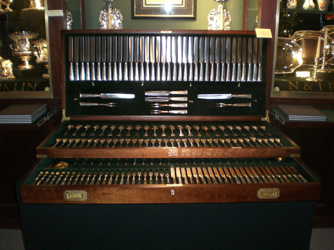 For dedicated collectors of sterling silver, or extravagant party-givers with sprawling dining rooms, then this show didn’t disappoint. N. & I. Franklin’s massive Duke of Leeds service for 24 arrived from London just in time for viewing. Dating from 1762, this George III fiddle thread and shell patterned flatware is attributed to silversmith Isaac Collard and is housed in a multi-drawer cabinet.